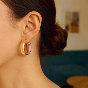 Chunky Hoop Earrings for Women are available in 10k, 14k, and 18k Rose, Yellow, and White Gold options. Chunky huggies in small, medium, large, and extra-large sizes feature a thick and eye-catching design. Lightweight and tarnish-resistant, these unique real gold designs are suitable for both daily wear and special occasions. They are nickel-free and hypoallergenic.