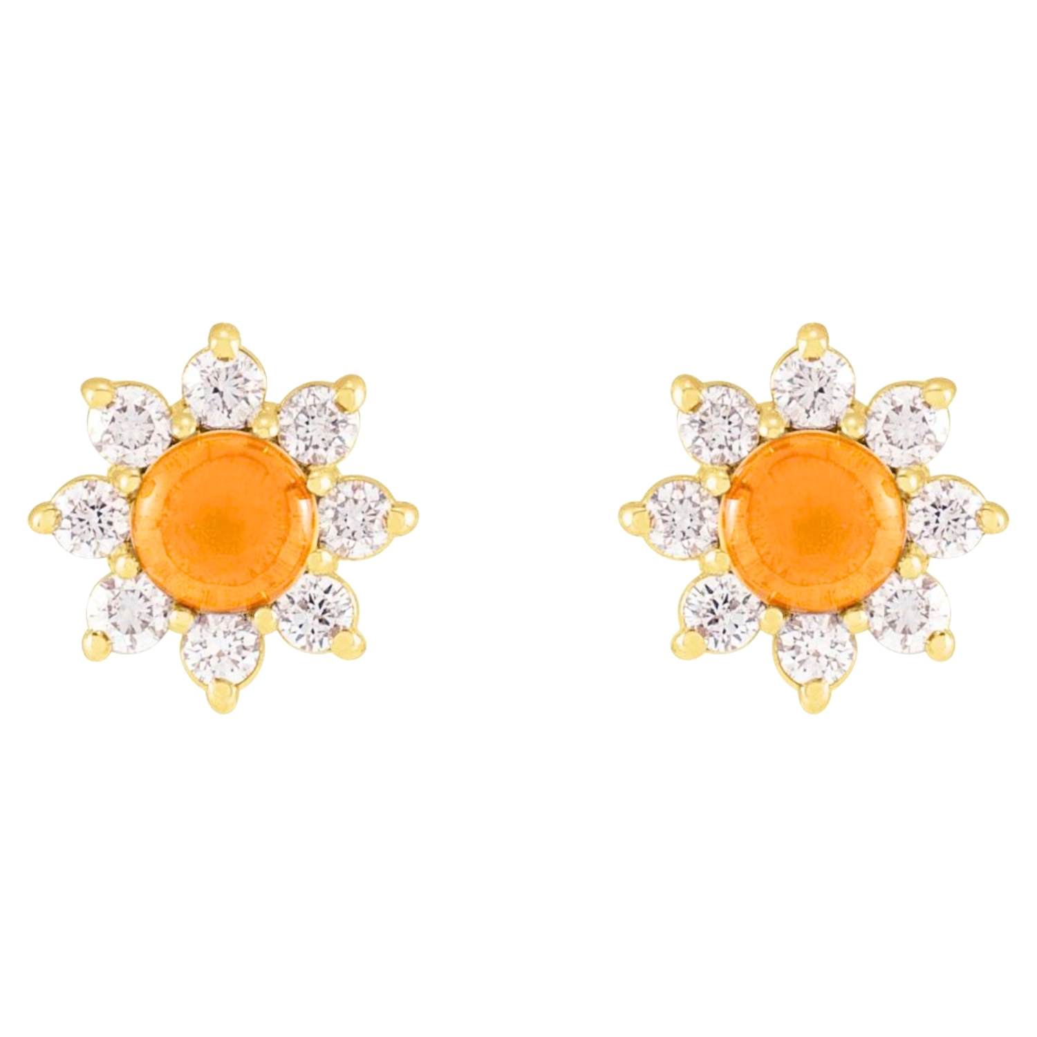 14K Gold Citrine and Diamond Flower Stud Earrings