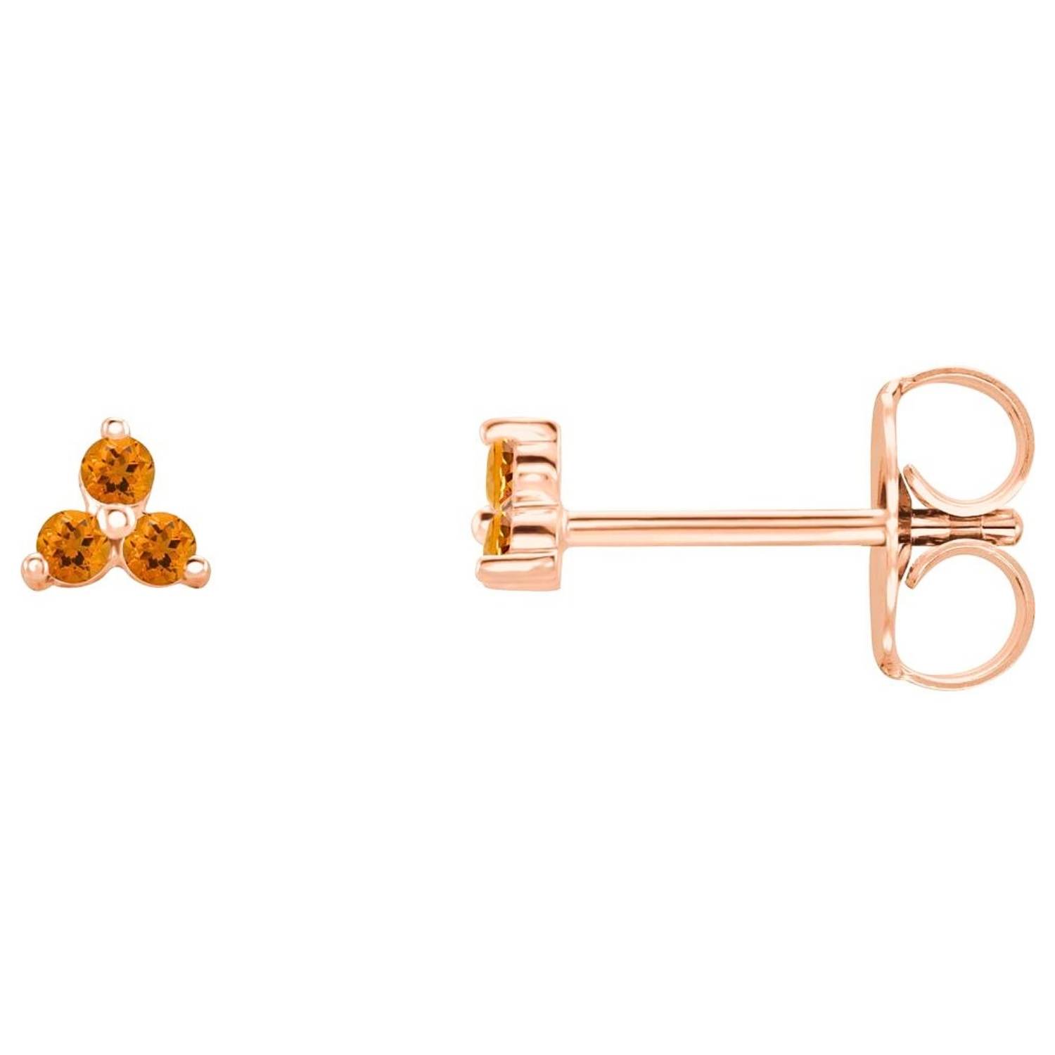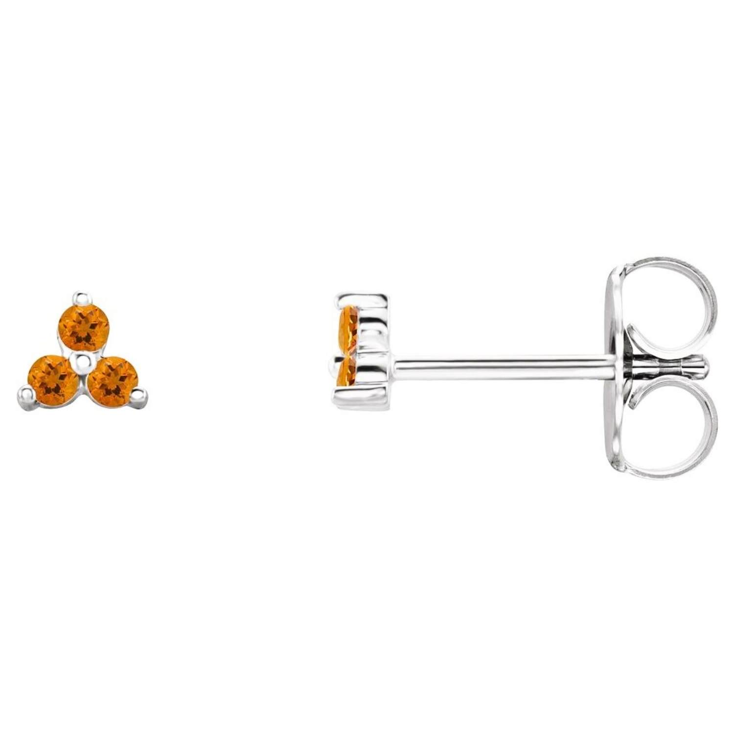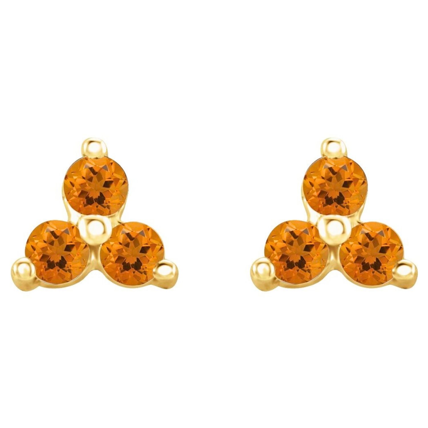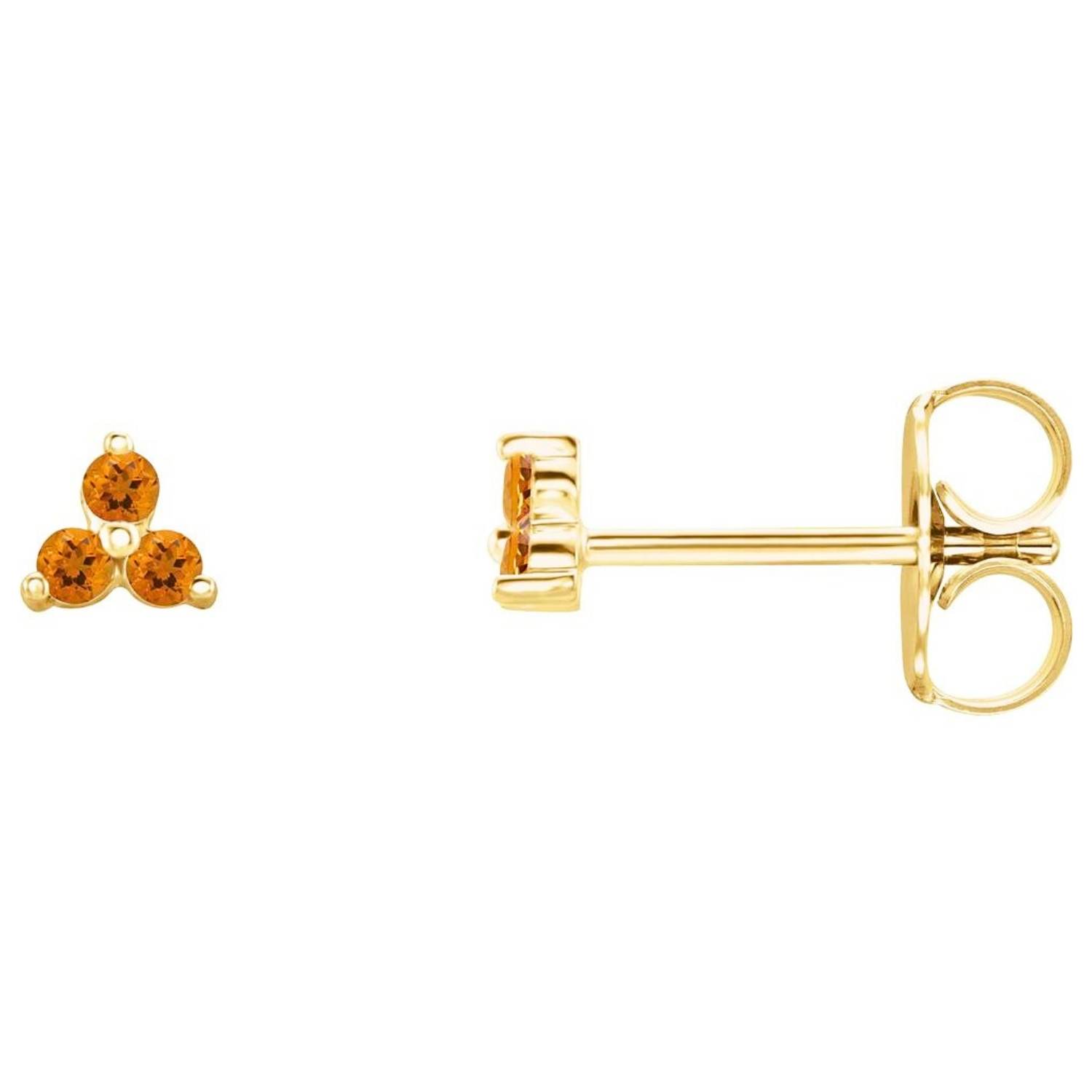 14K Gold Genuine Citrine Three Stone Cluster Stud Earrings