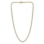 Introducing the Classic Miami Cuban White Pave Solid Chain Necklace in 14k Yellow Gold. This exquisite piece combines timeless elegance with modern flair, making it a perfect accessory for any occasion.