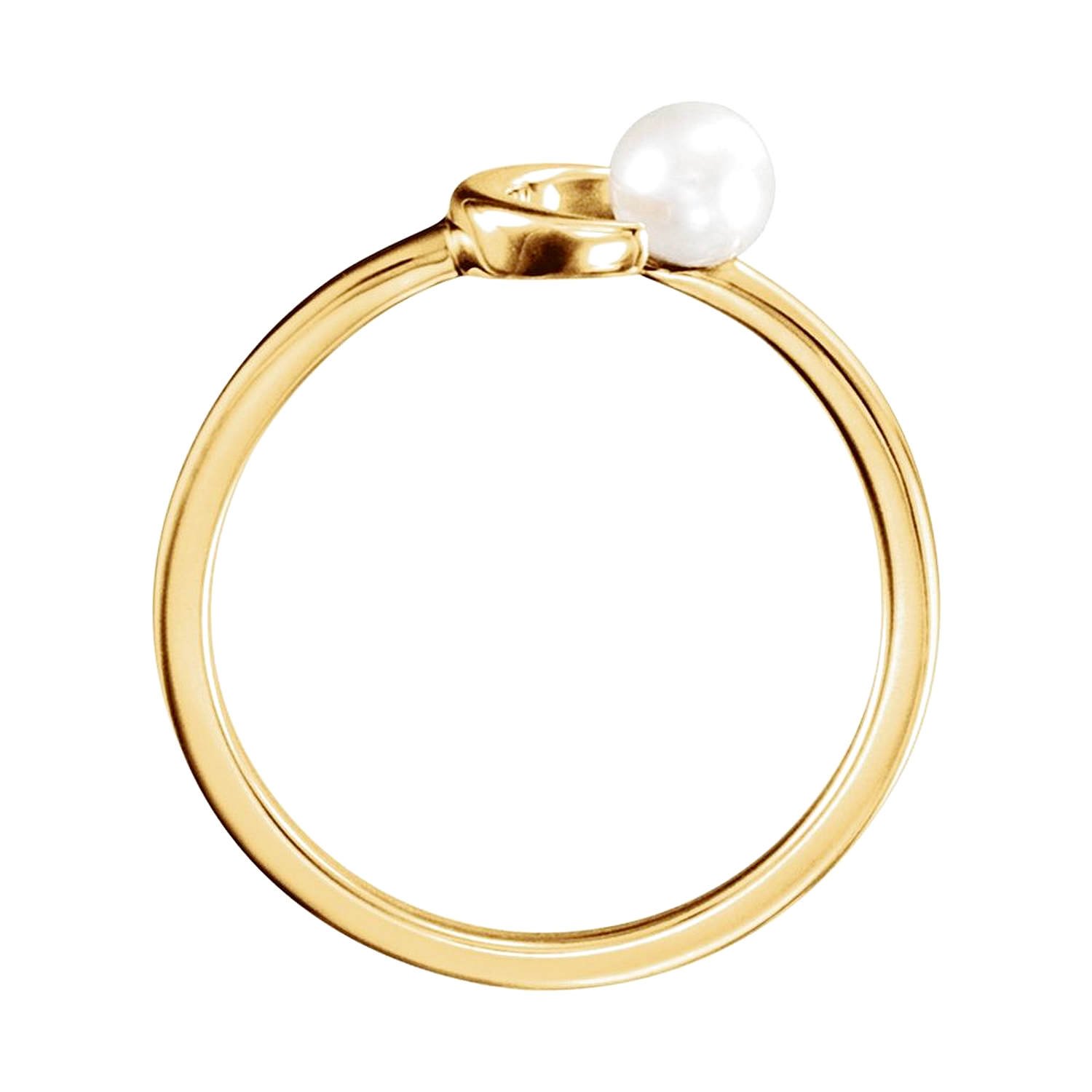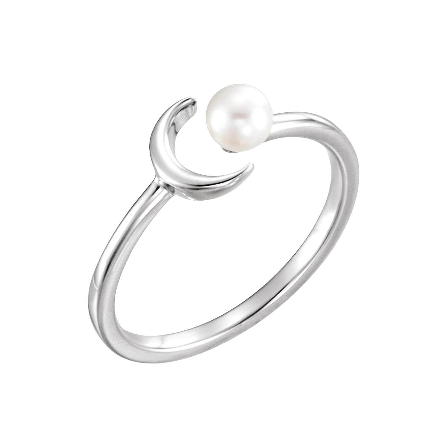 14K Gold Cultured Freshwater Pearl Crescent Moon Ring