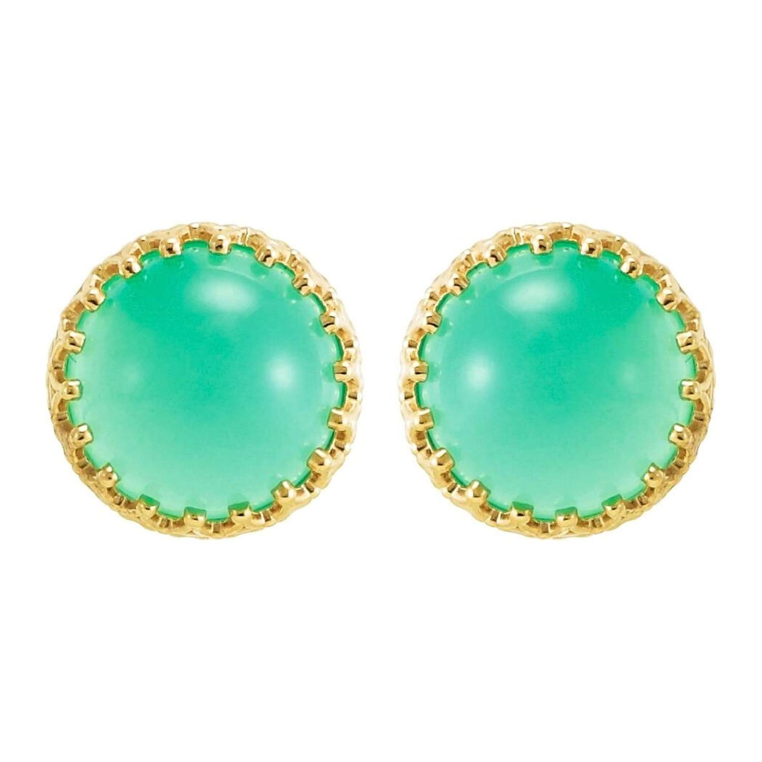 14K Gold Crown Cabochon Green Chrysoprase Stud Earrings offer unique elegance with their crown-shaped frame and vibrant chrysoprase stones. Order online now to take advantage of free shipping and special discount offers.