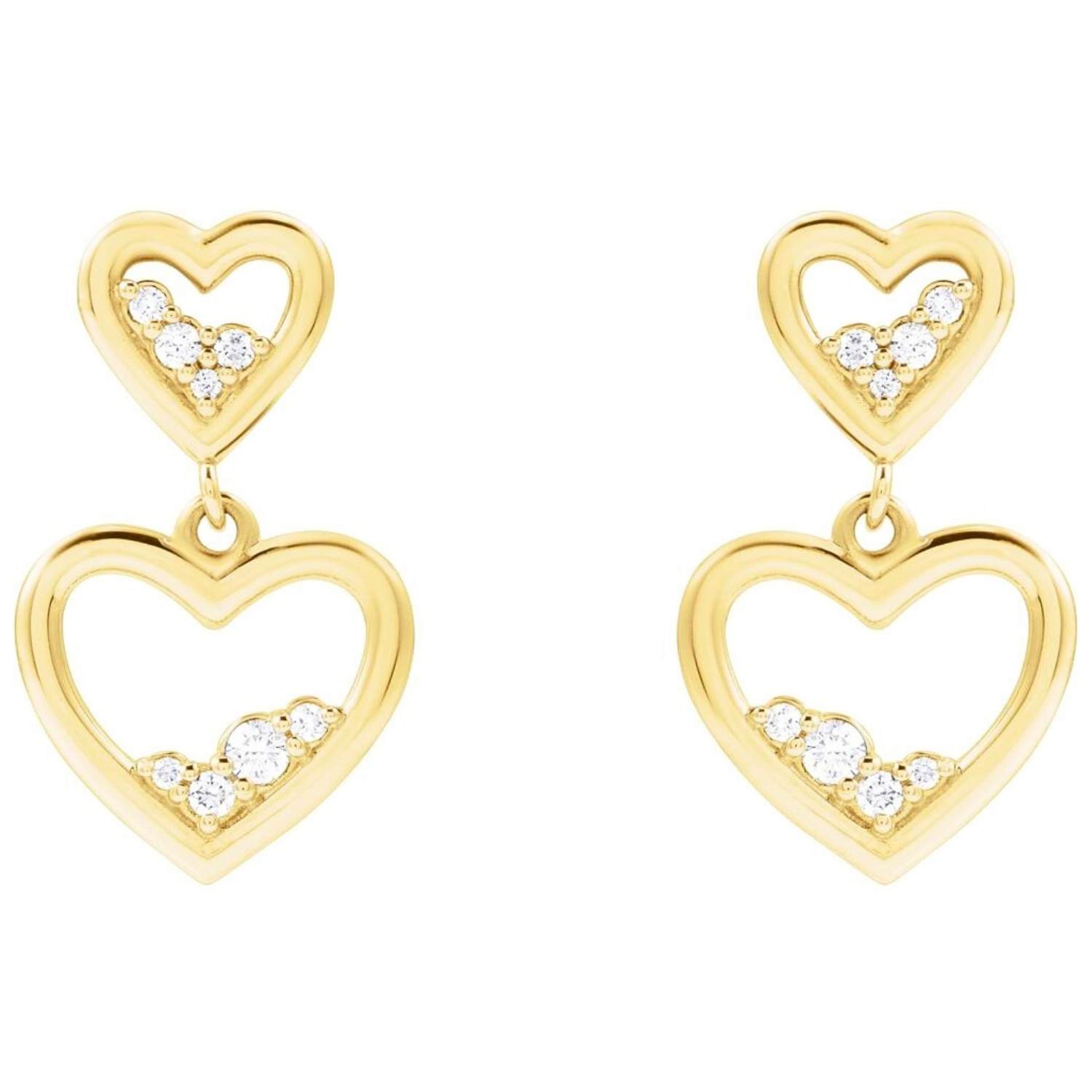 14K Gold Diamond Accented Double Heart Dangle Earrings 1/5 CTW