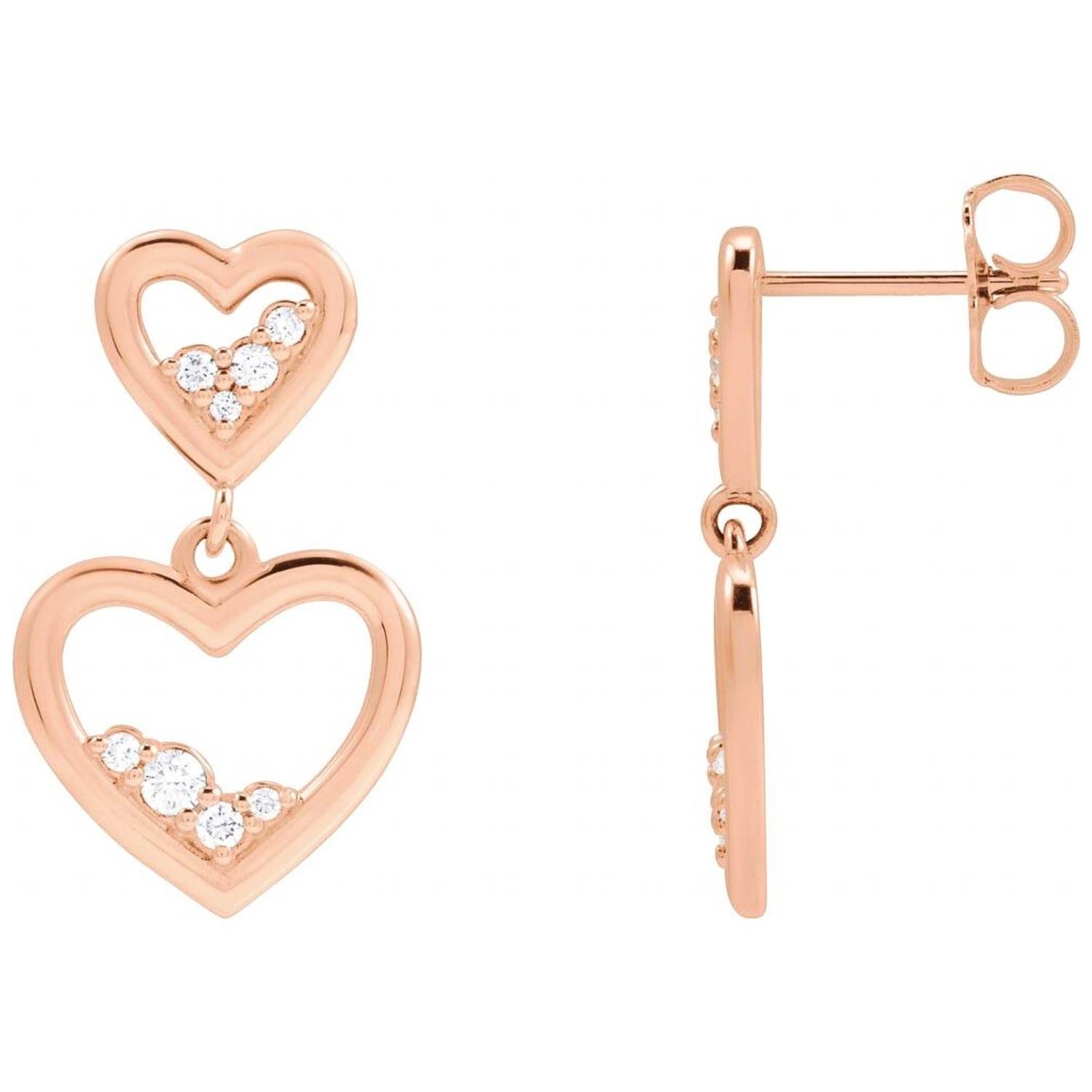 Combining the elegant movement of the heart with sparkling diamonds, the 14K Gold Diamond Accented Double Heart Dangle Earrings stand out as both a stylish and sentimental gift option. Order now to take advantage of special offers and free shipping.