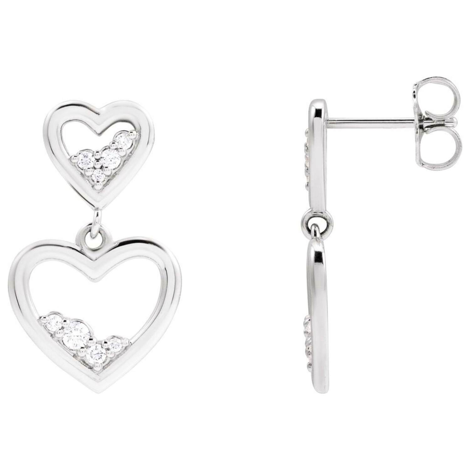 Featuring exquisite craftsmanship and elegant design, the Diamond Accented Double Heart Dangle Earrings combine the sparkle of natural diamonds with a romantic heart design. Round-cut diamonds are arranged in varying sizes to add depth and movement to the earrings. The dangling design catches the light from every angle, creating a striking look. They complement every style, from everyday outfits to special occasions.