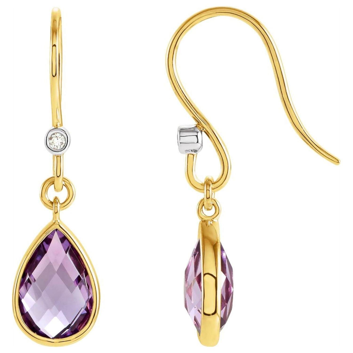 Diamond Accented Amethyst Teardrop Dangle Earrings 14K Yellow Gold