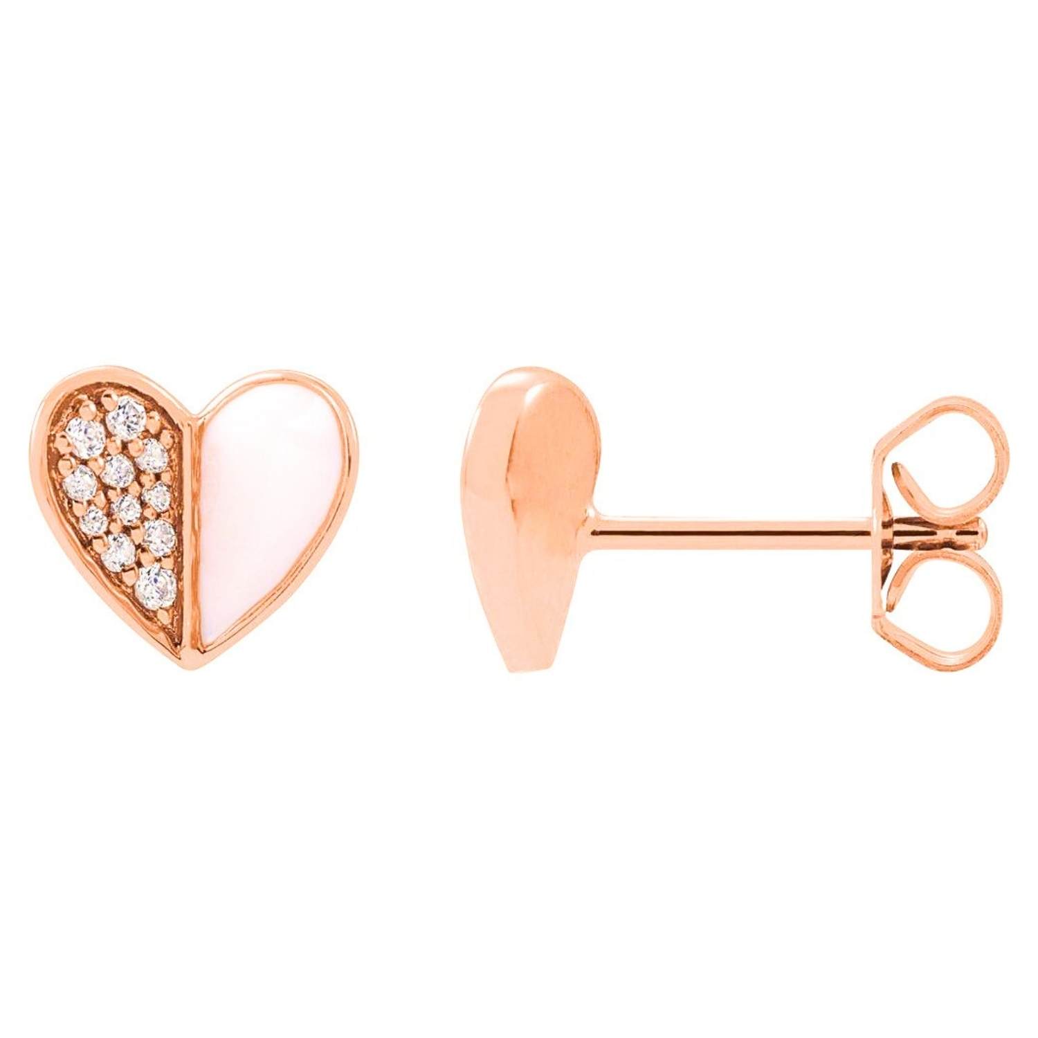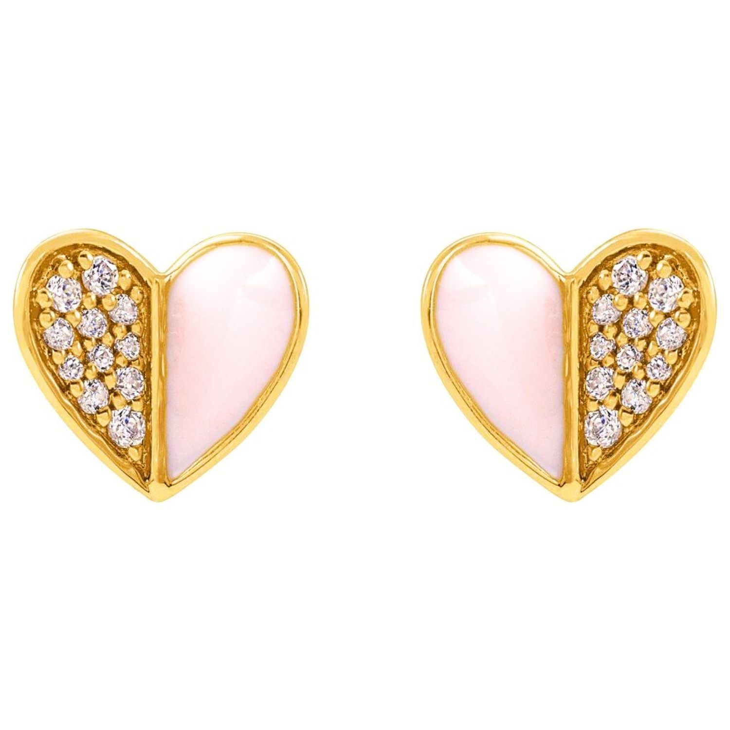 14K Gold Half Diamond Half Pink Enamel Heart Stud Earrings