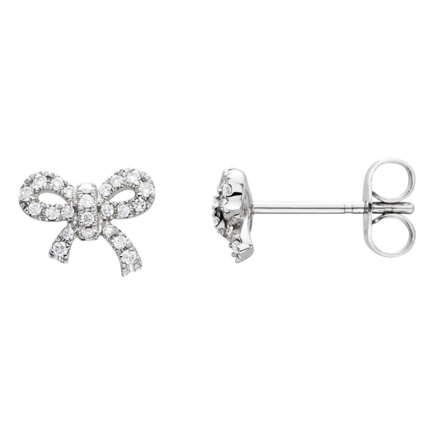 14K Gold Diamond Bow Stud Earrings 1/5 Carat TW