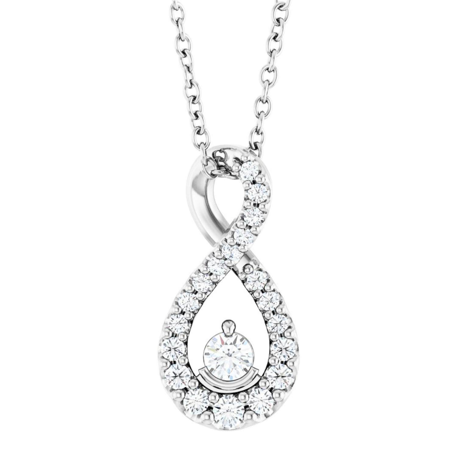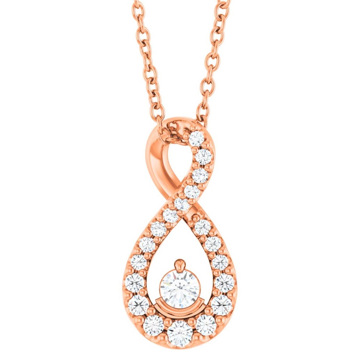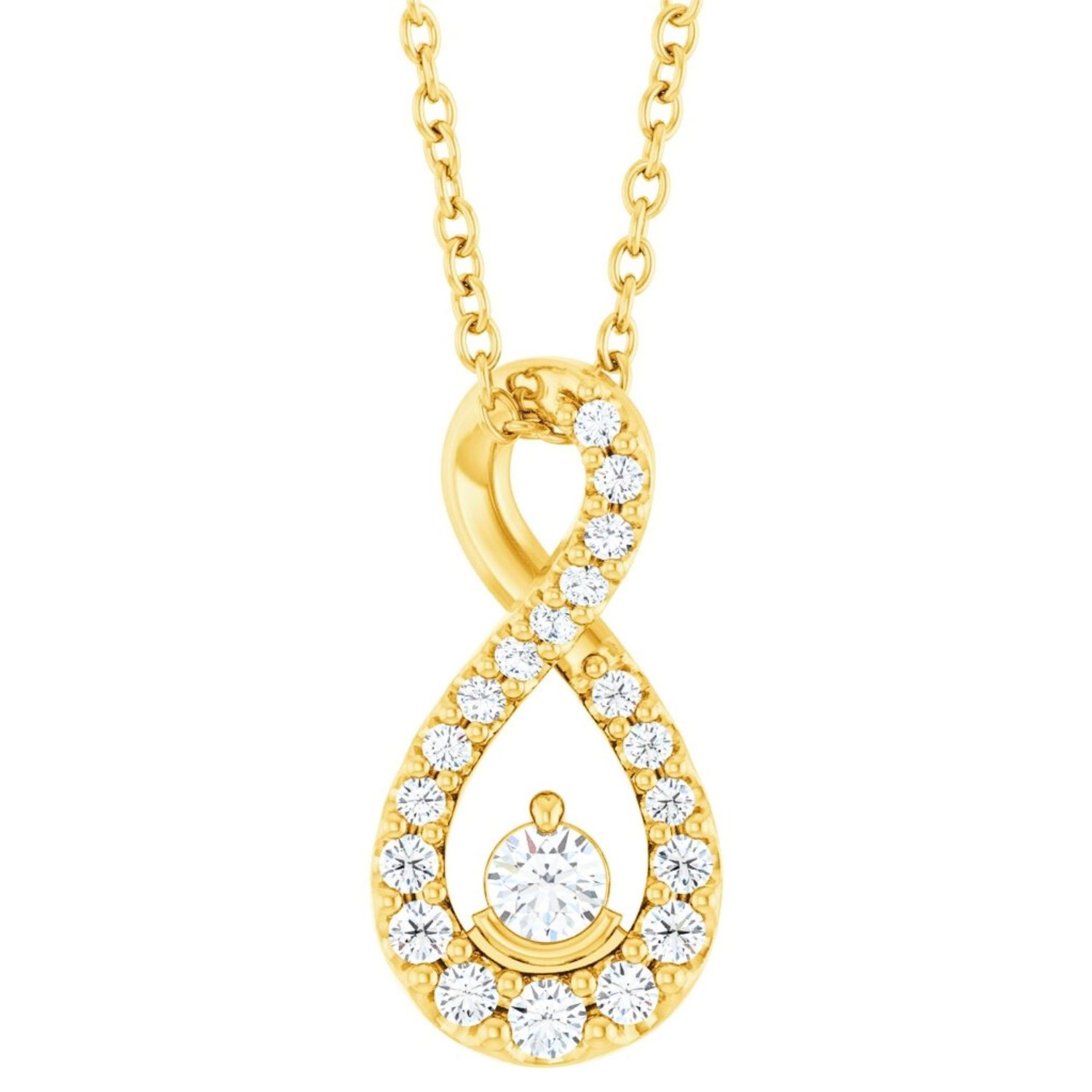 14K Gold Genuine Diamond Infinity Swirl Pendant Necklace 1/6 Ct tw