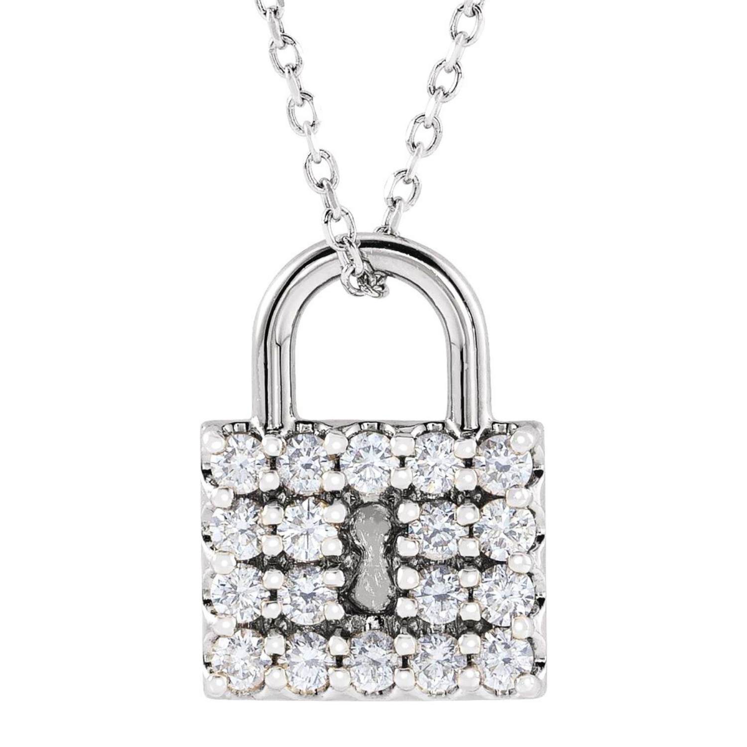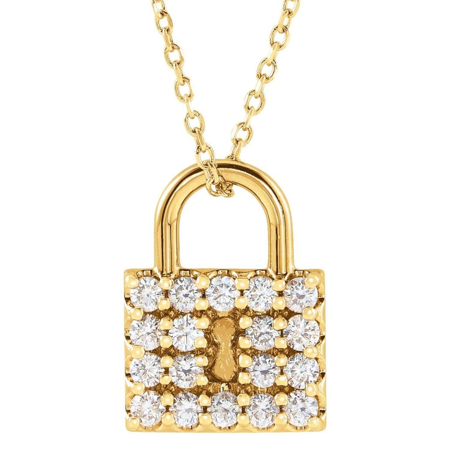 14K Gold Diamond Lock Pendant Necklace for Women 1/2 CTW