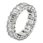 Introducing the Emerald Cut Lab Grown Diamond Eternity Ring, crafted in 14k white gold. This elegant ring symbolizes everlasting love and commitment, making it a perfect gift for anniversaries or special occasions. With its stunning emerald cut diamonds set in a continuous band, it adds a sophisticated touch to any outfit.