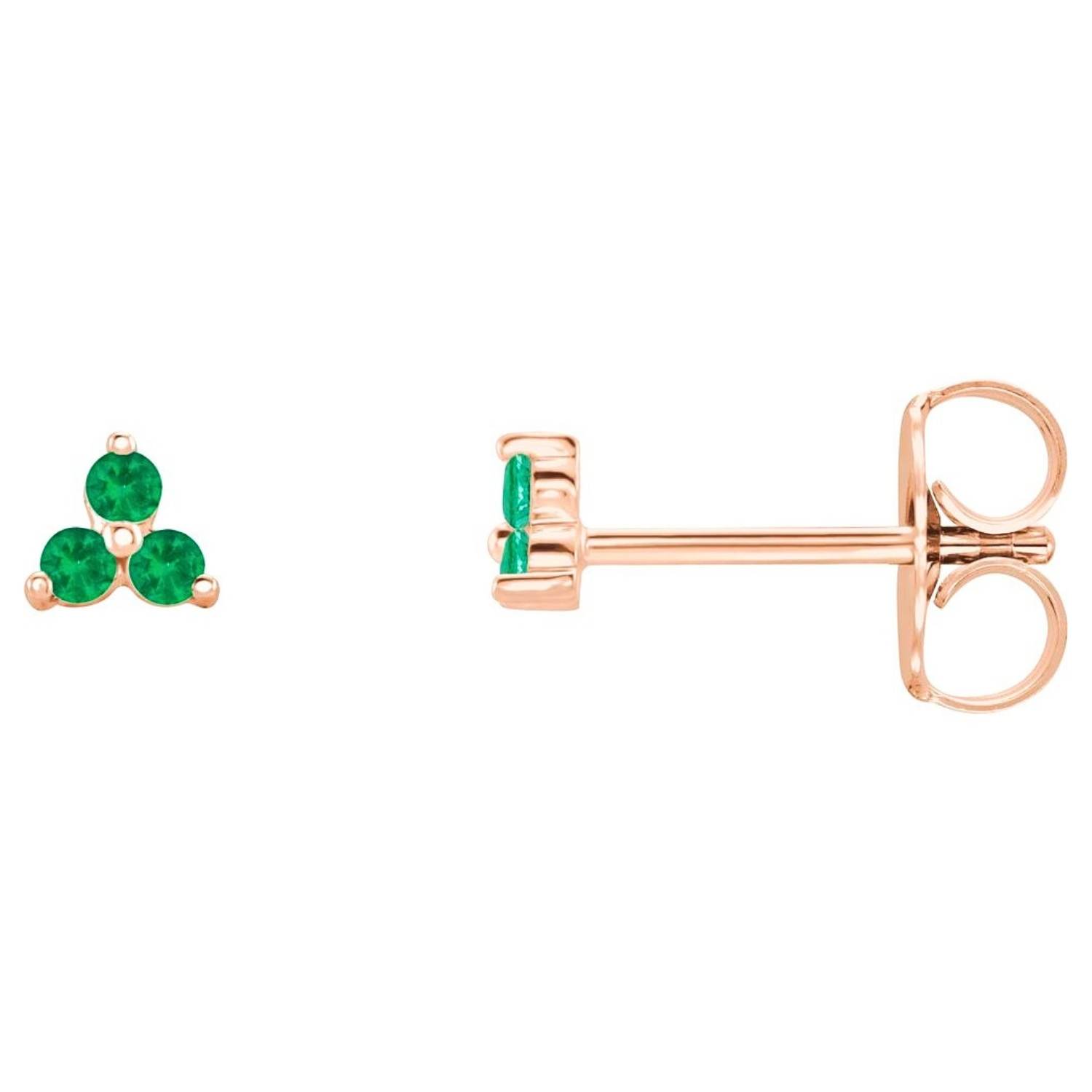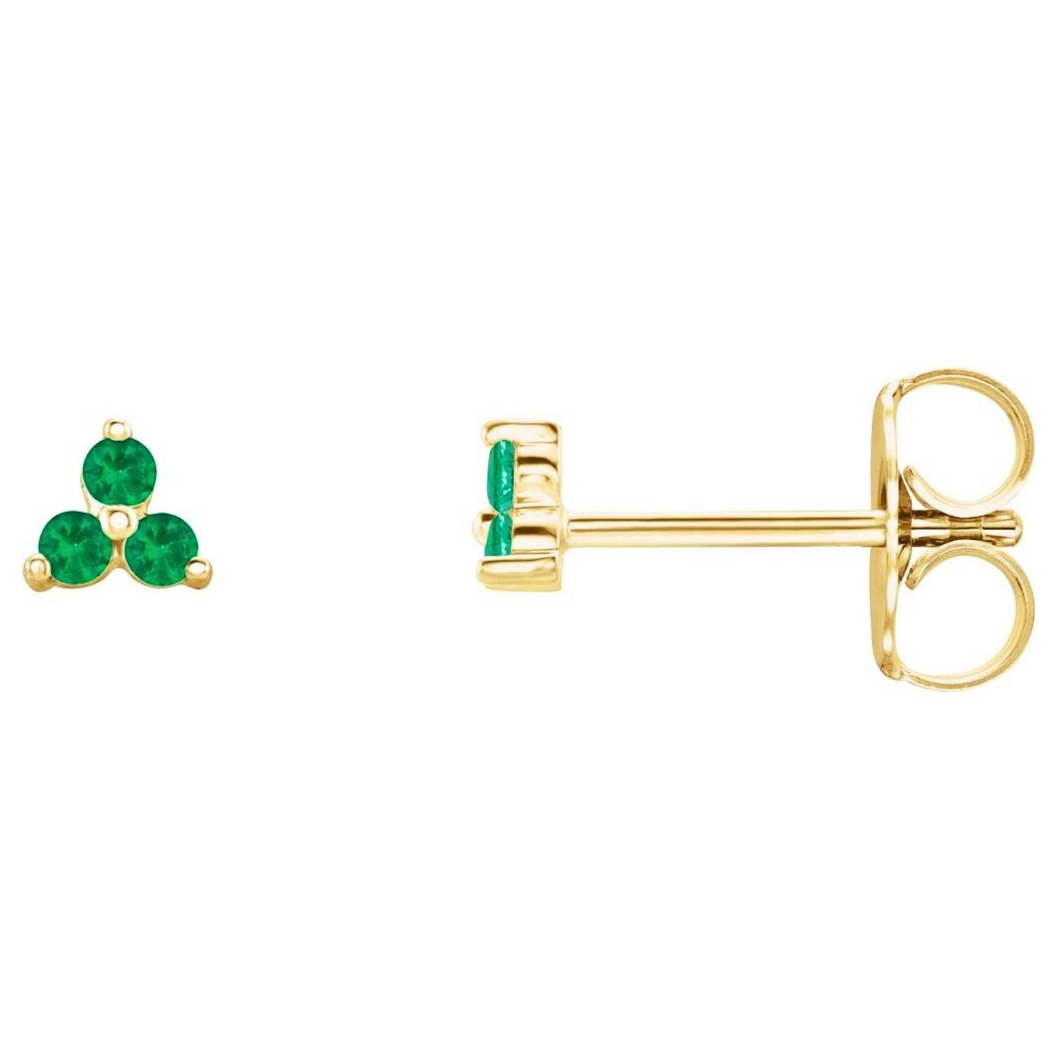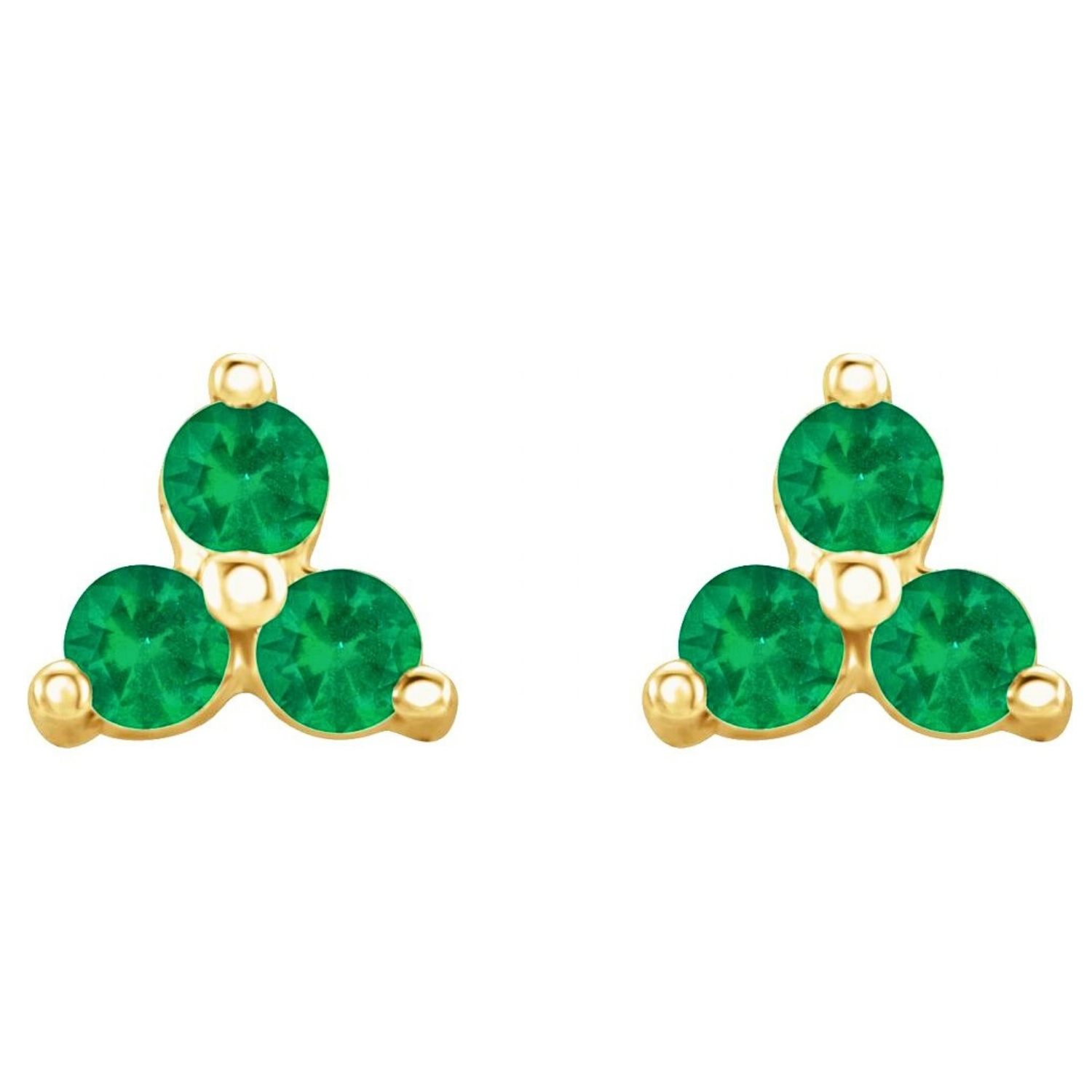 14K Gold Emerald Three Stone Cluster Stud Earrings