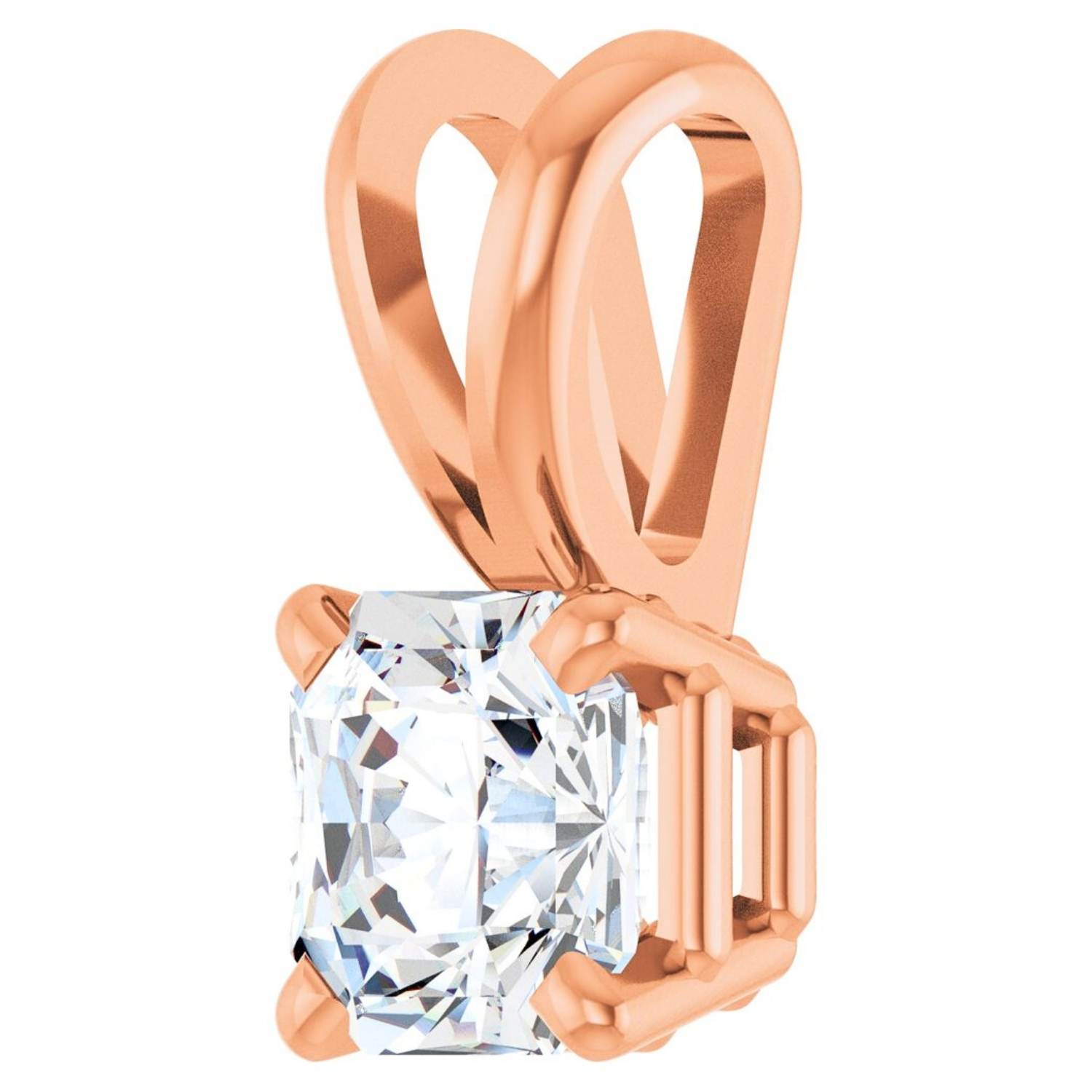 Real 1/2 CT Asscher Cut Solitaire Diamond Pendant 14K Gold