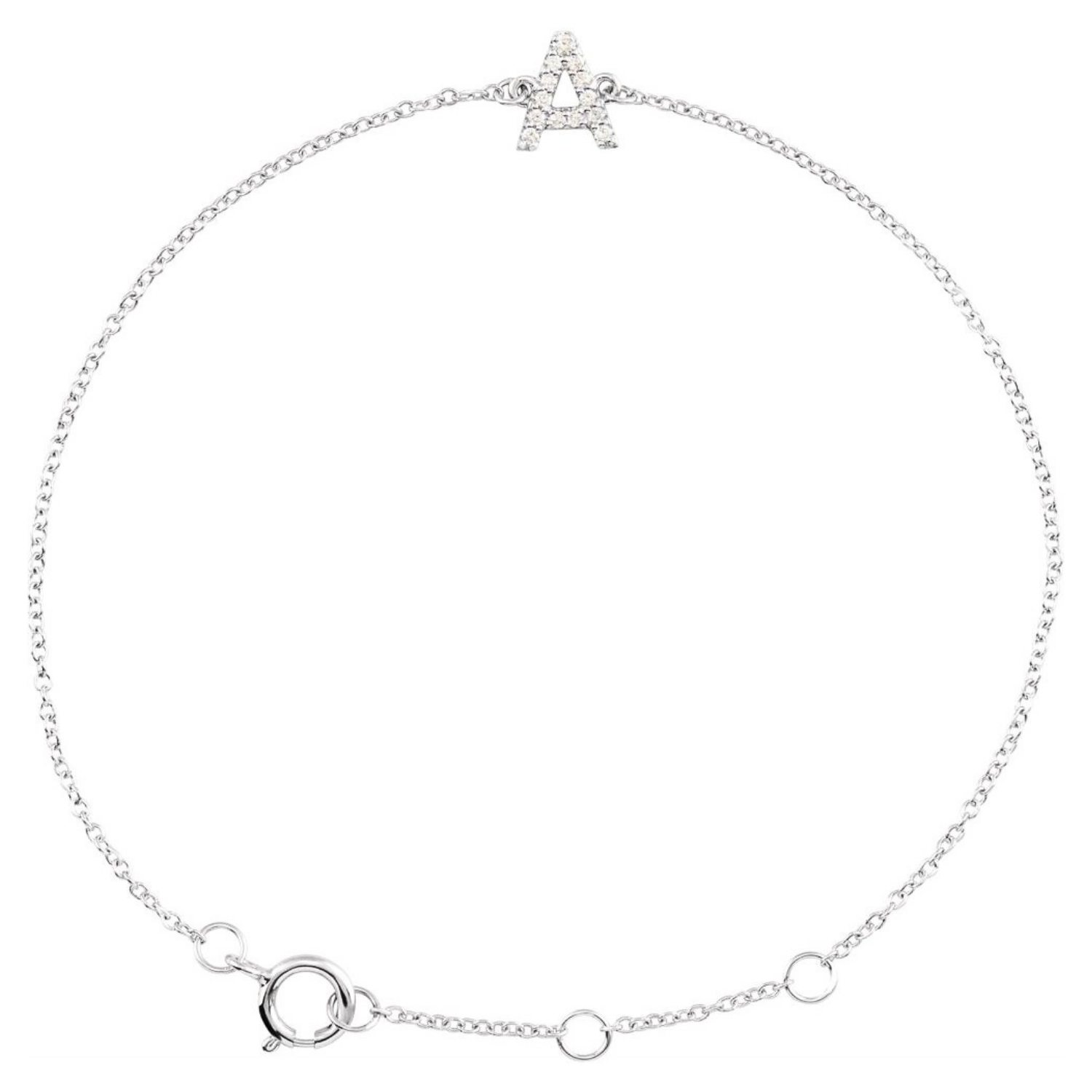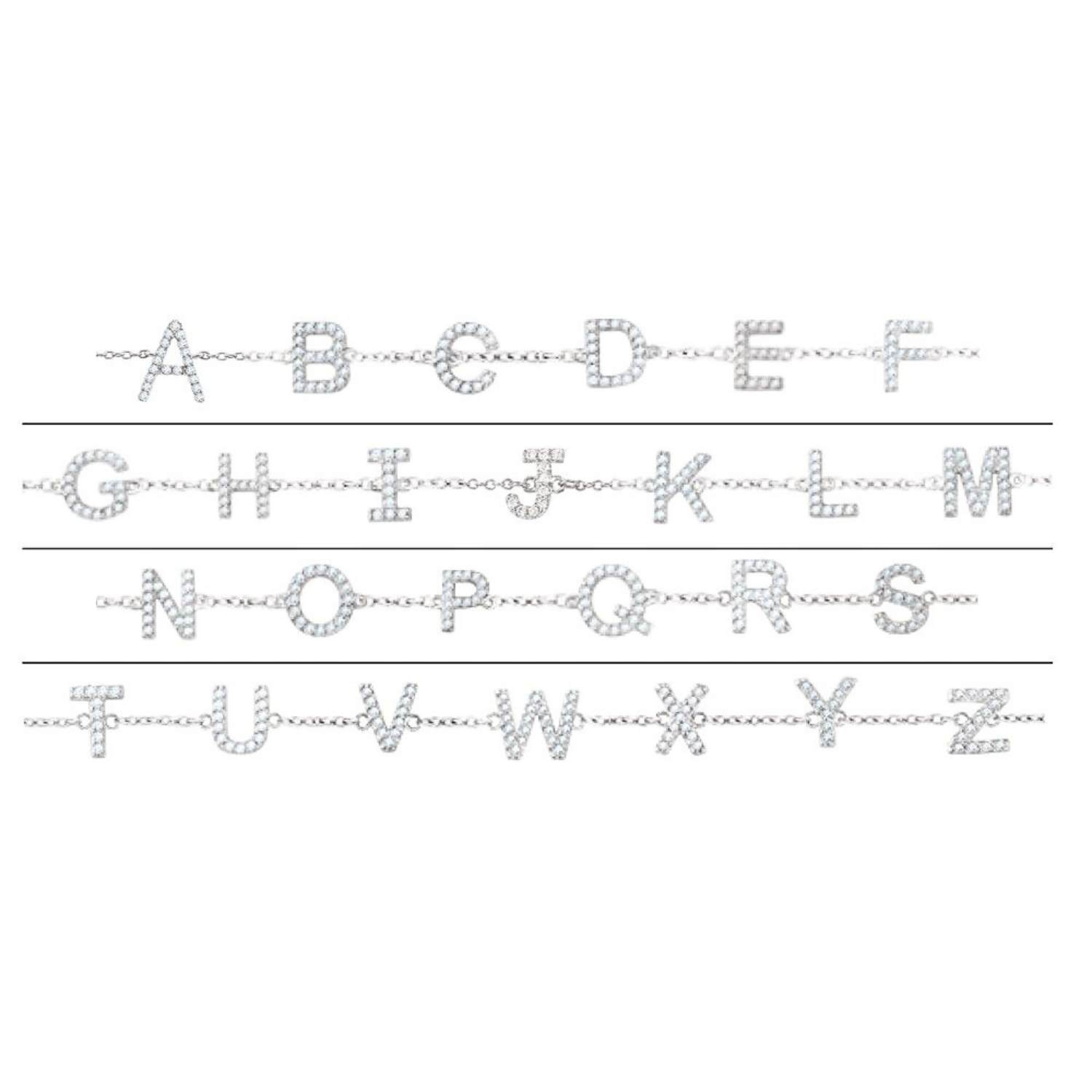 14K White Gold Genuine Diamond Initial Bracelet for Women