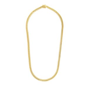 Gold Miami Cuban chain necklaces complement women’s elegance and easily adapt to any style with their powerful and eye-catching design. Also known as Miami Cuban, these models are made of solid, durable real gold and accompany you on both everyday occasions and special days. The brilliance and durability of solid gold combine with the Cuban link chain’s characteristic thick, square links to create a unique look.