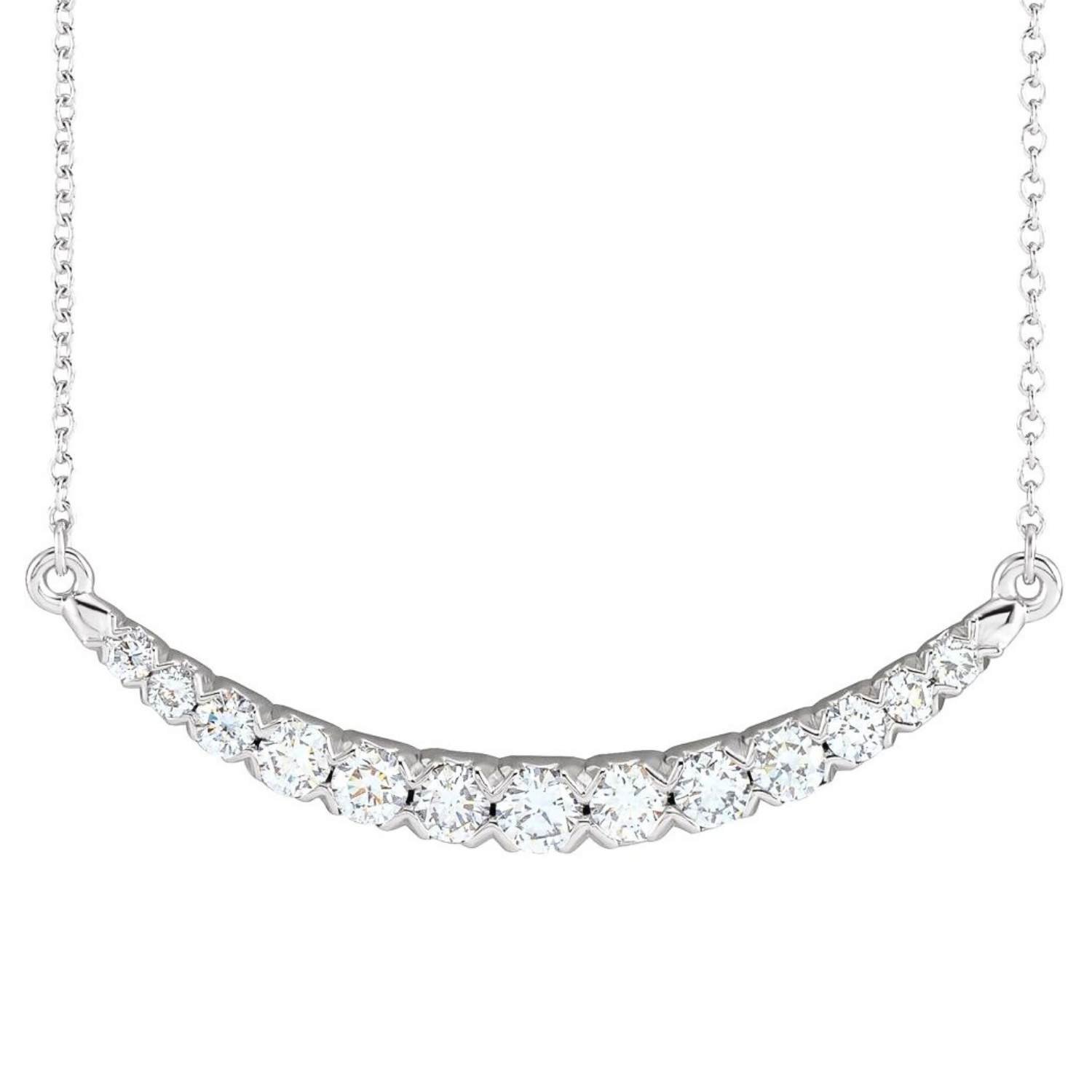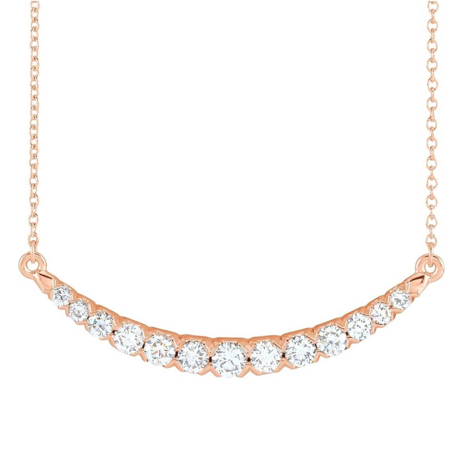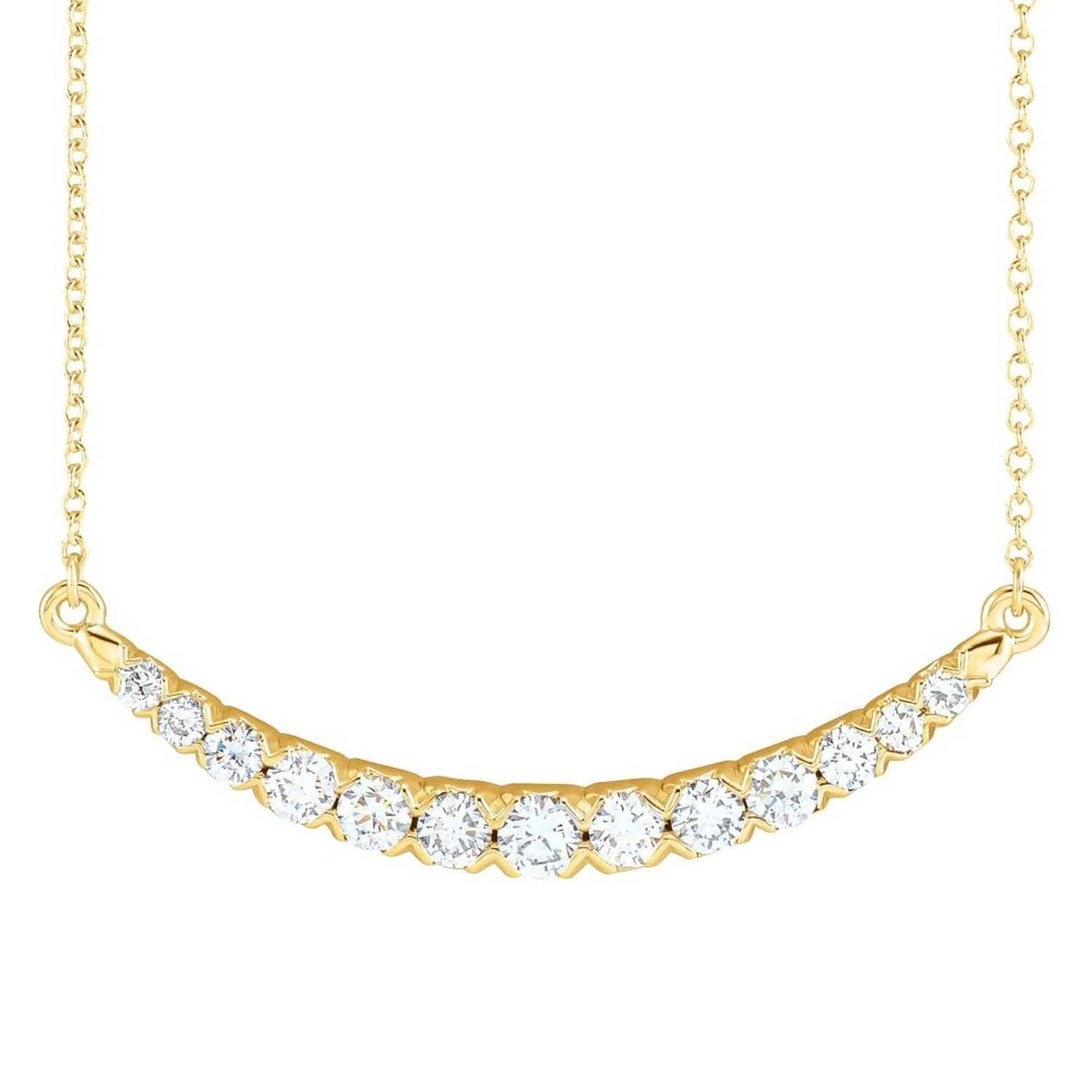 3/4 CT TW 14k Gold​ French Set Graduated Diamond Curved Bar Necklace