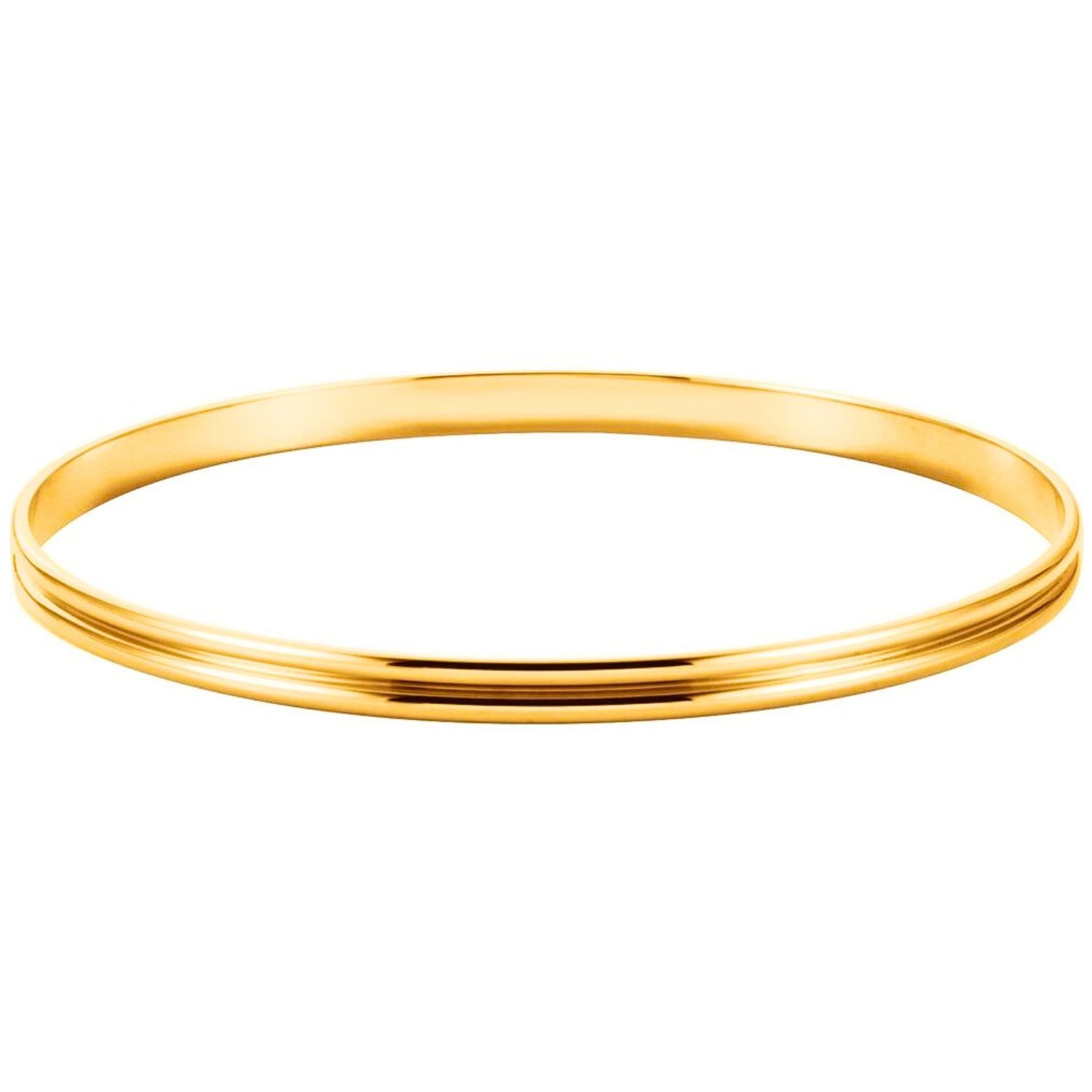 Solid 14K Yellow Gold Grooved Bangle Bracelet carries elegance with you at all times with its grooved line details and elegant design. Order online now and take advantage of free shipping and special discounts.