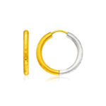 14K Two-Tone Gold Hammered Hinge Tube Hoop Earrings 15mm x 2.5mm