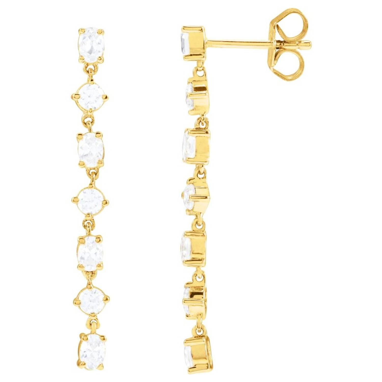The 7 Stone Long Dangle Lab-Grown Diamond Earrings, a combination of elegance and sparkle, offer a special touch of sophistication with their lab-grown diamonds set in 14K gold. The oval-cut stones add eye-catching movement with their long dangle design. They make every moment special, from everyday wear to special occasions.
