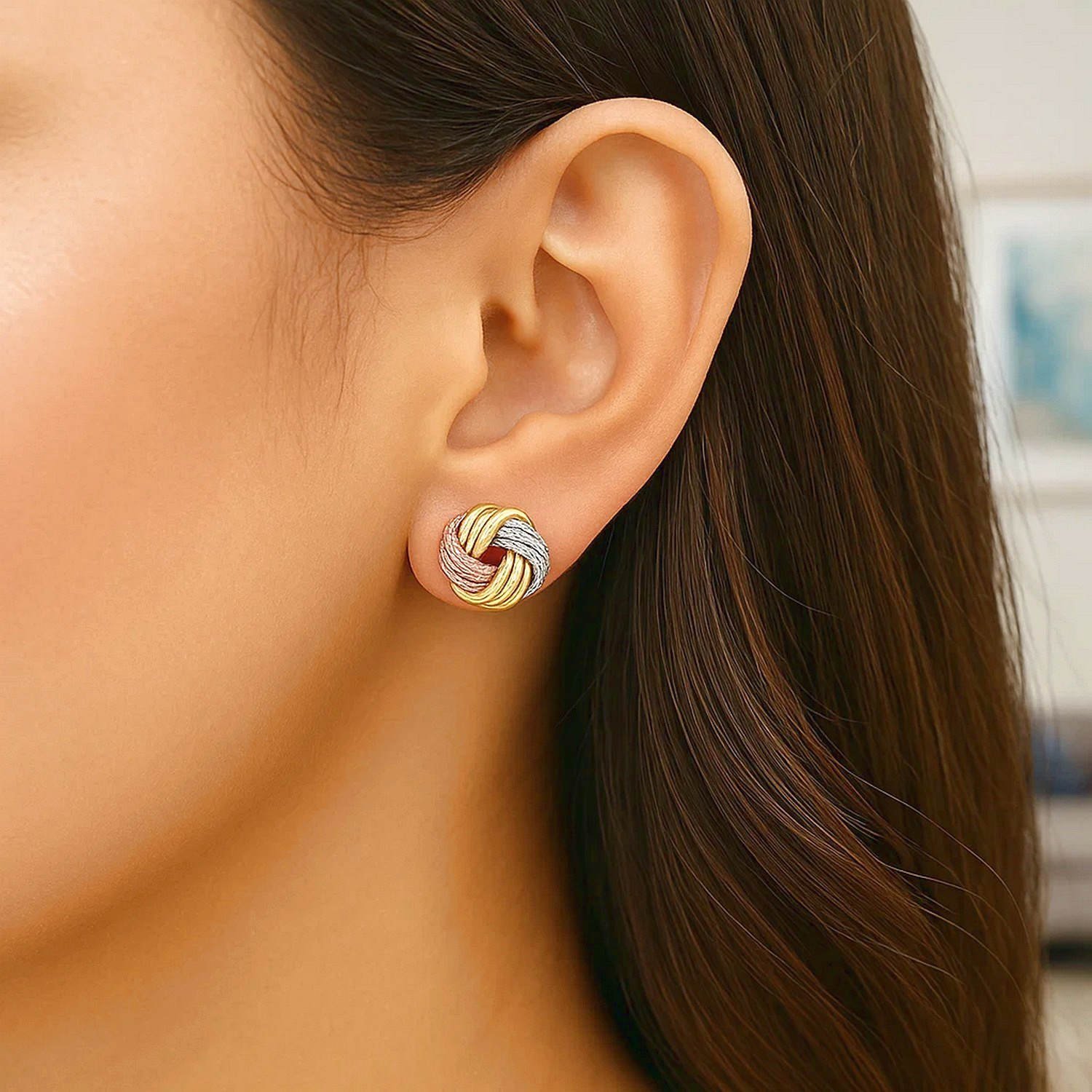 Women’s Love Knot Stud Earrings 14k Tri Color Yellow White and Rose Gold