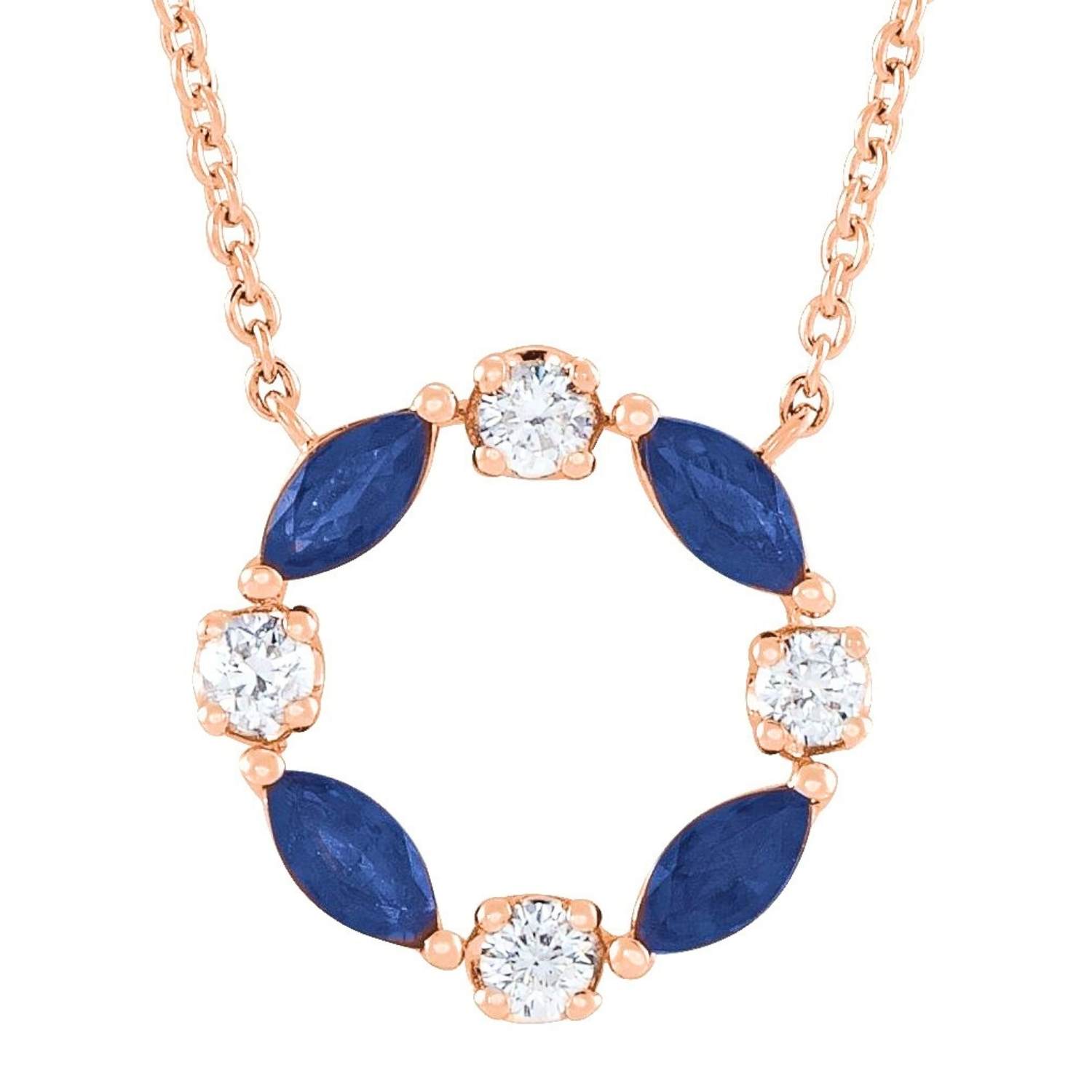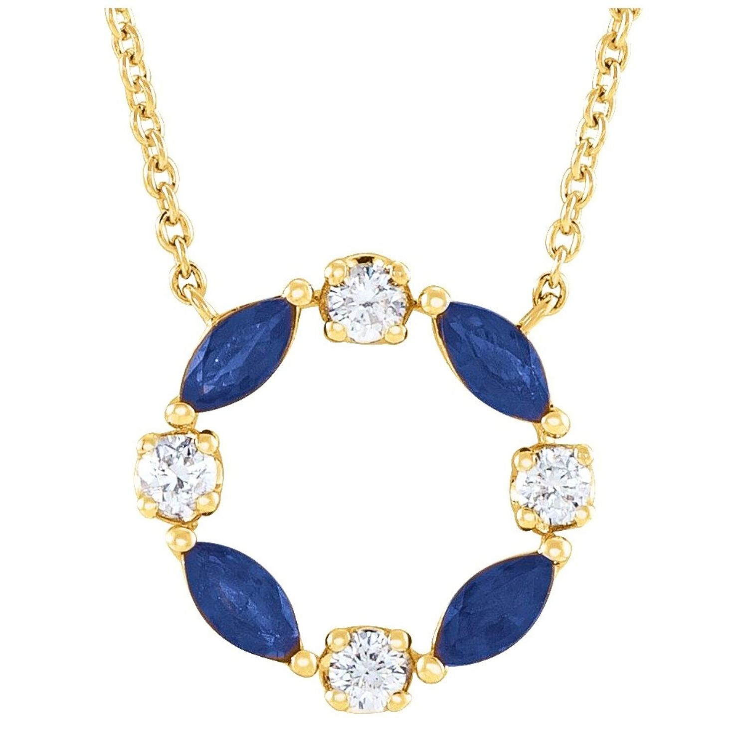 The 14K Gold Marquise Blue Sapphire and Diamond Circle Necklace combines the elegance of sapphire and diamond. Order online now to enjoy free shipping and special discounts.