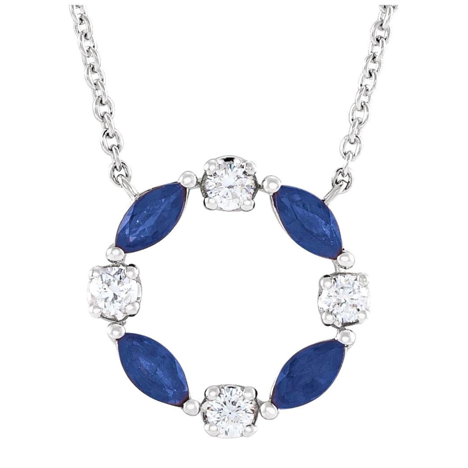 14K Gold Marquise Cut Blue Sapphire and Diamond Circle Necklace