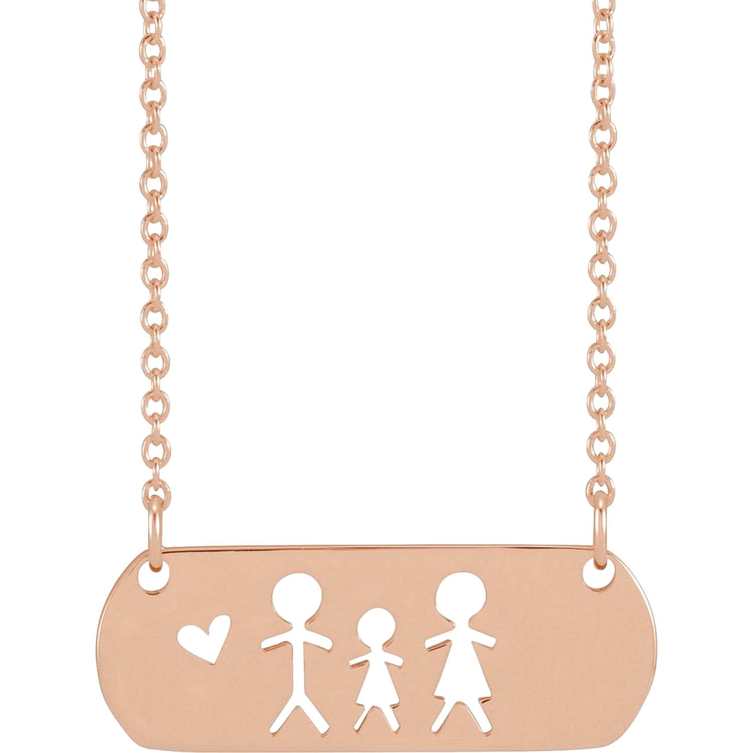 This 14K gold mother, father and daughter necklace is designed as a simple yet meaningful representation of family connection. Featuring a minimal stick figure family motif, the pendant reflects the bond between parents and their daughter in a clean and timeless form.