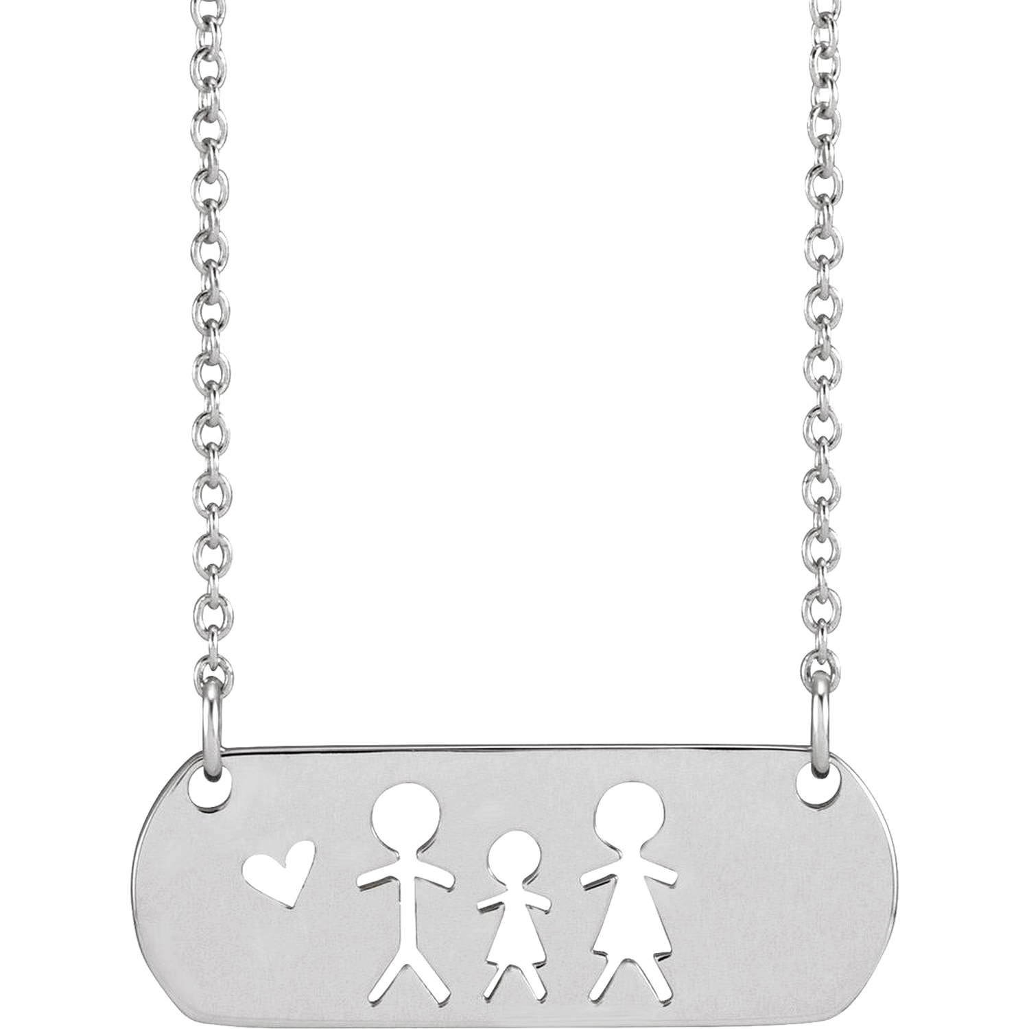 Finished with a polished surface, the pendant hangs from a delicate cable chain and sits comfortably at the neckline. This necklace is often chosen as a sentimental family keepsake, a thoughtful gift for parents, or a meaningful piece that celebrates family unity in a simple and wearable way.