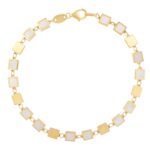This bracelet blends the warm glow of solid and real 14 K yellow gold with the delicate shimmer of mother of pearl, creating a refined accent for any occasion.