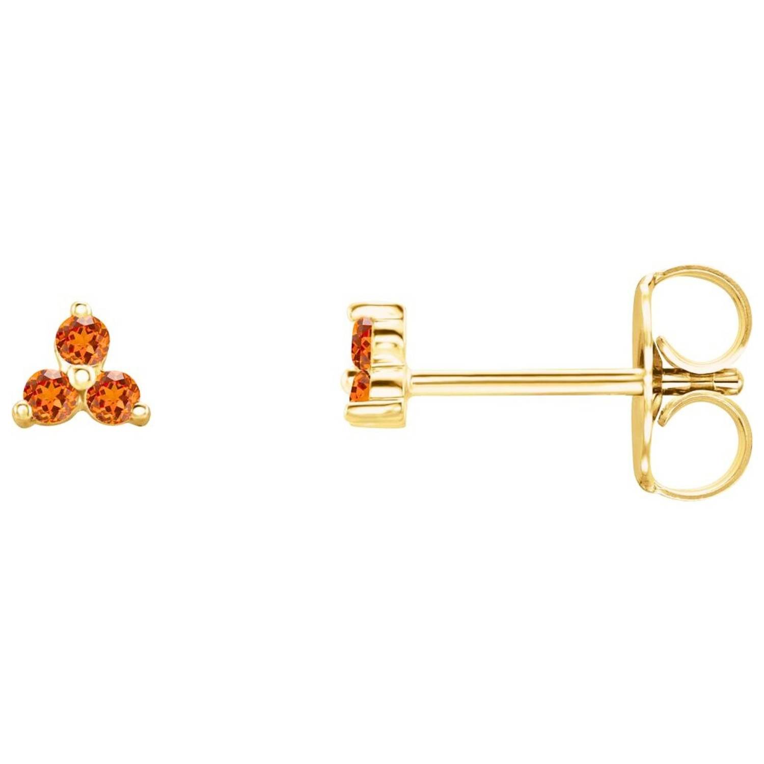 14K Gold Orange Garnet Trio Cluster Stud Earrings