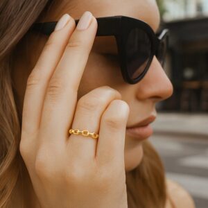 For women who love romance in their style, heart-shaped gold rings, flower-inspired designs, and timeless oval rings stand out. Each of these pieces, made of real gold, carries both aesthetic and emotional value.