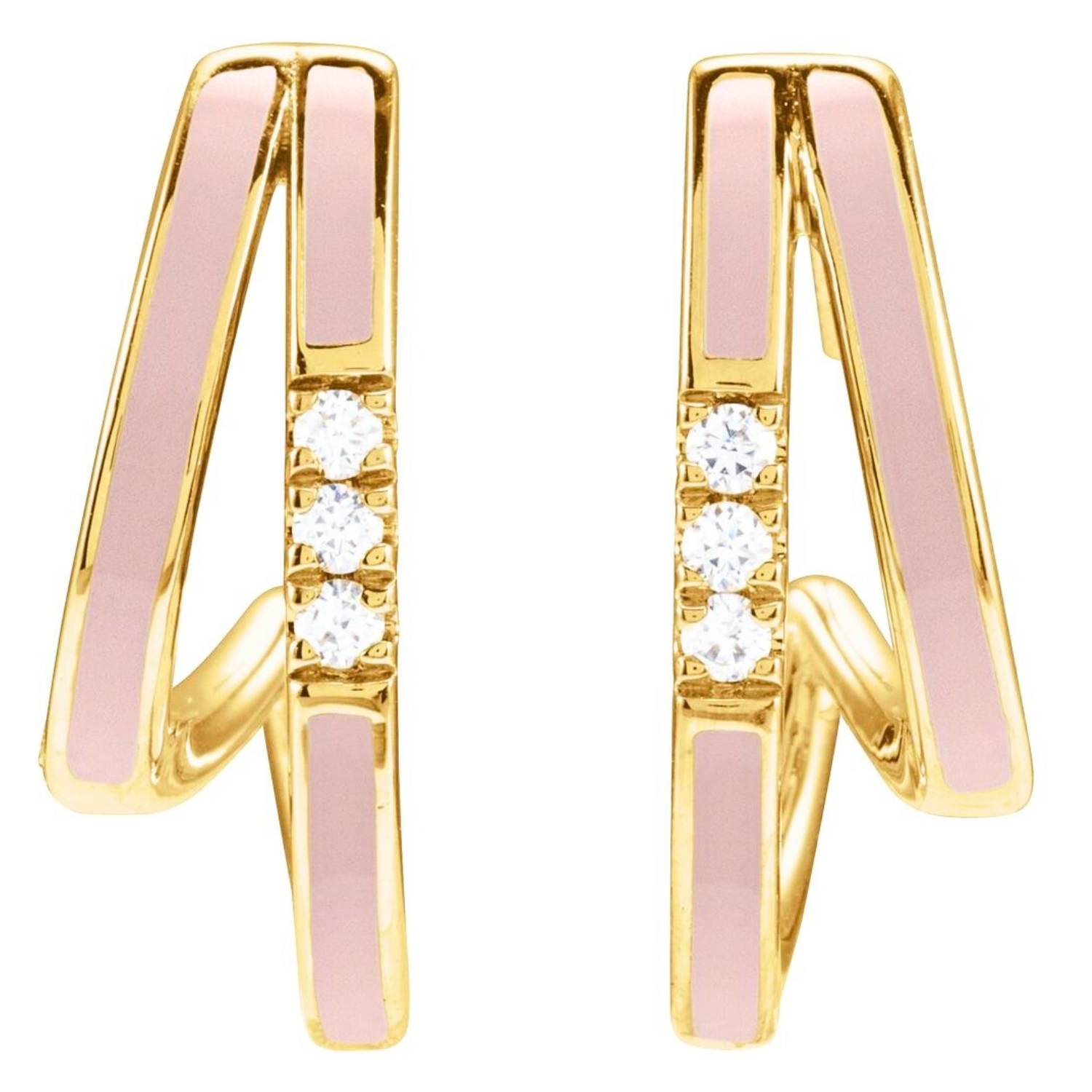 Asymmetrical double-row hoop earrings add a feminine and modern touch to women’s outfits with their pink enamel design and diamond details. The colorful enamel details add elegant sophistication to everyday wear while highlighting your style on special occasions.