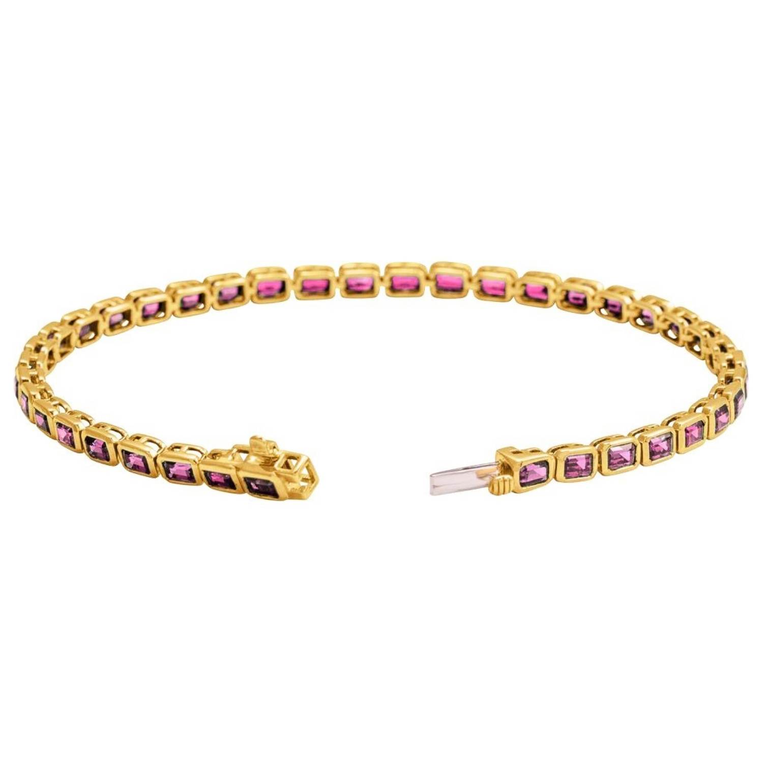 14K Gold Emerald Cut Pink Tourmaline Tennis Bracelet