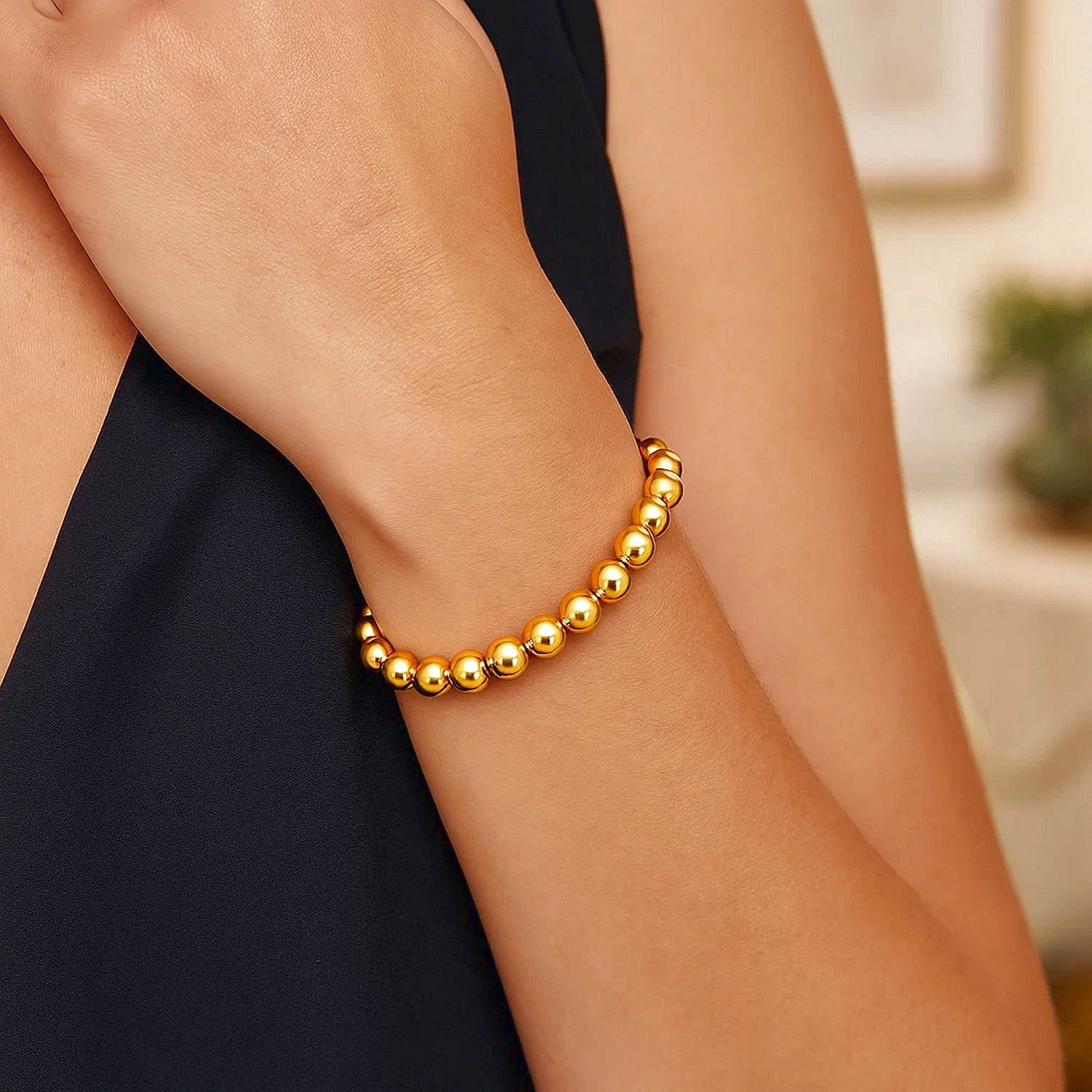 The round bead form with a shiny surface offers a warm and natural glow, creating a simple yet striking look on the wrist. Worn alone, it creates a minimalist style, while easily complementing layered combinations when paired with other bracelets. Suitable for a wide range of occasions, from everyday outfits to special events, it can also be a meaningful gift option for birthdays, anniversaries, or other special days.