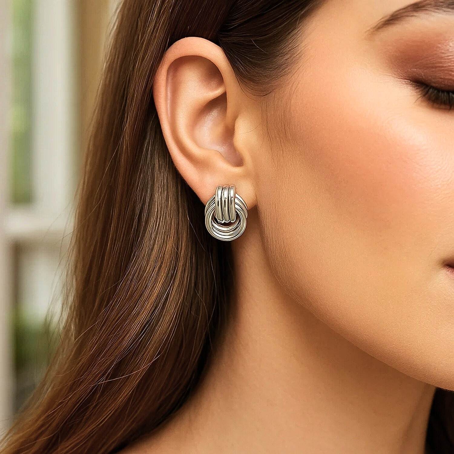 Sterling Silver Interlocking Rings Love Knot Earrings combine timeless elegance with a meaningful design. Made from genuine 925 sterling silver and rhodium-plated for long-lasting shine. The interlocking ring design symbolizes love, unity, and an eternal bond. The silver’s shiny surface perfectly reflects light, while its simple form suits both everyday wear and special occasions.