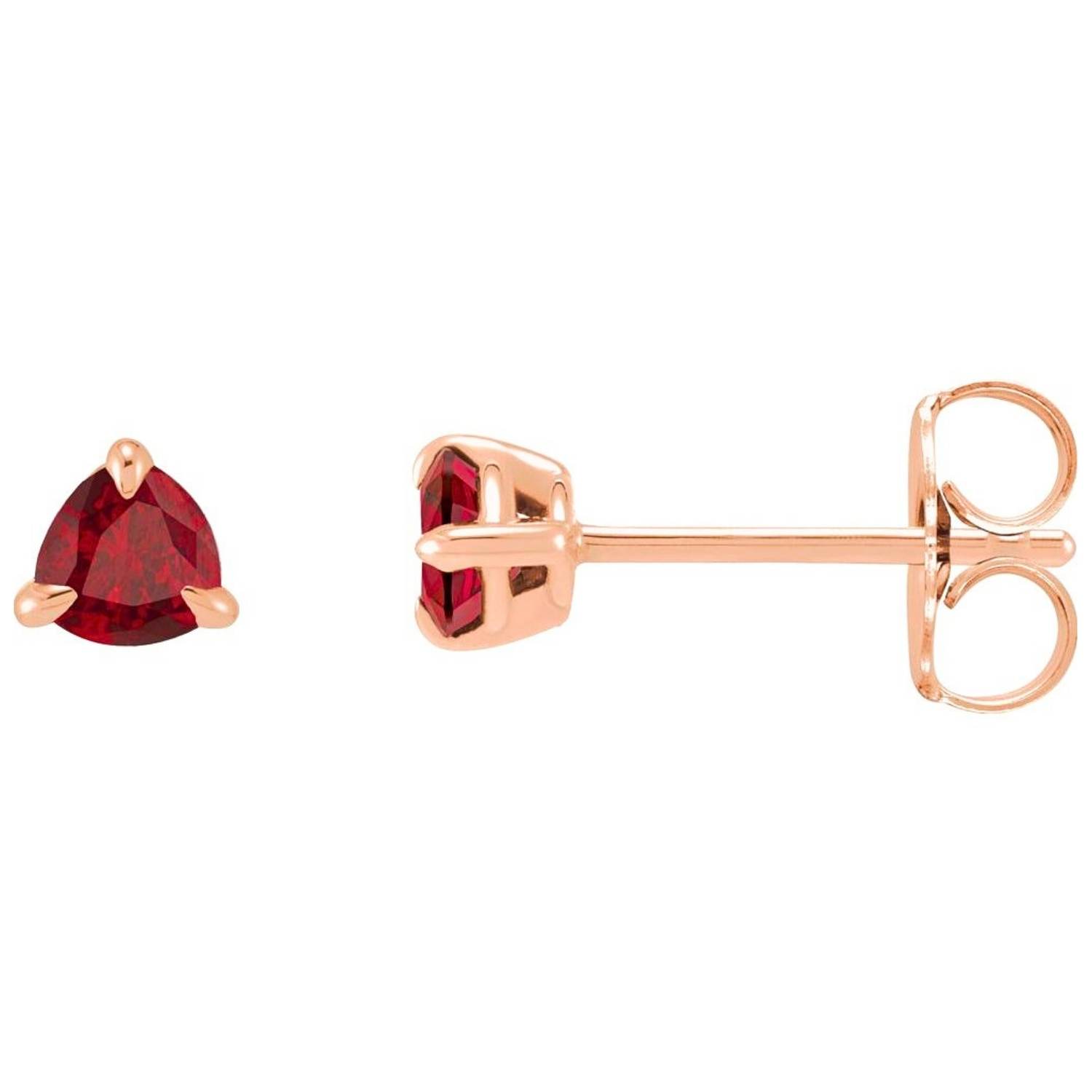 14K Gold Genuine Trillion Cut Ruby Stud Earrings