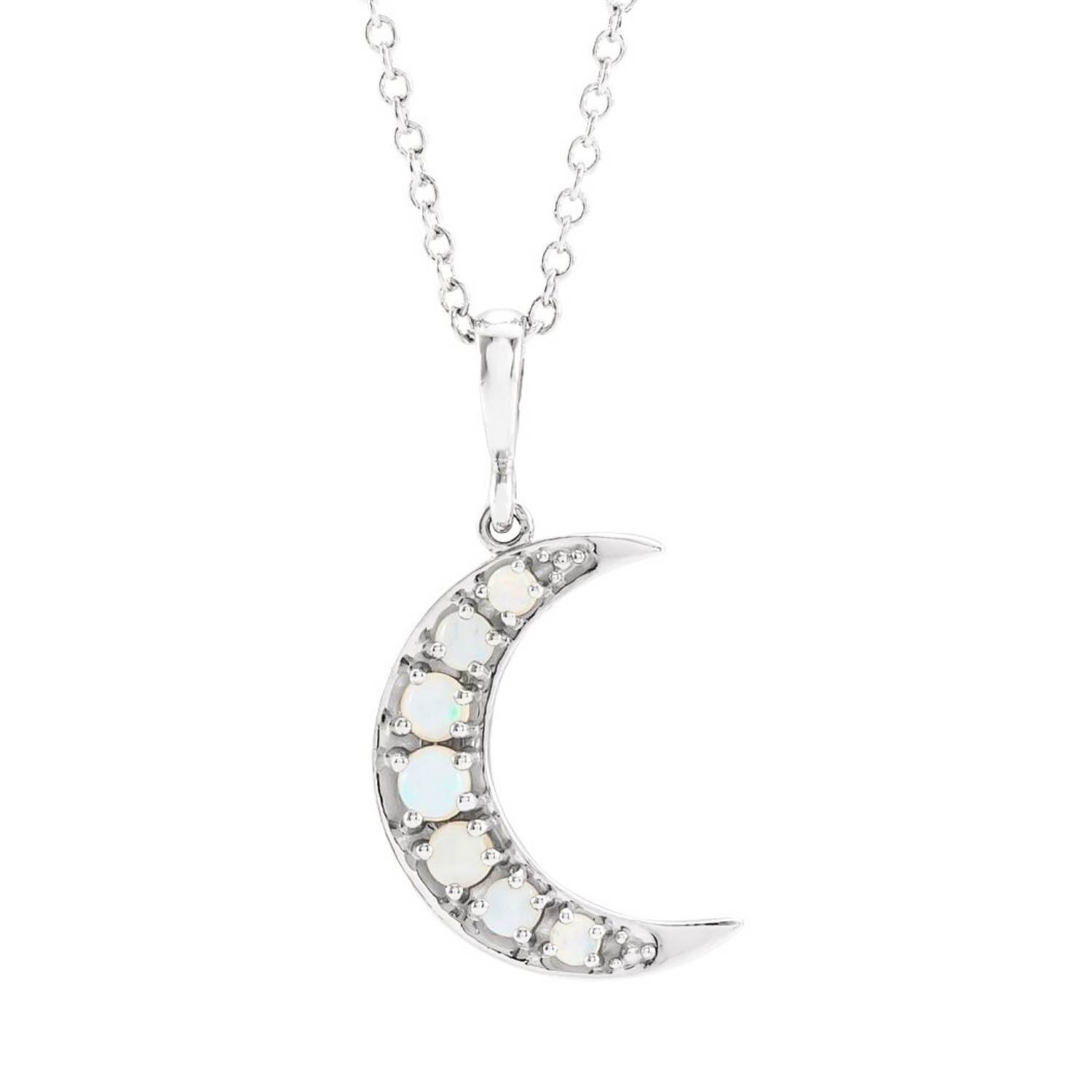 You can take advantage of discounts and free shipping by purchasing this 14K Gold Natural White Opal Crescent Moon Necklace online now.