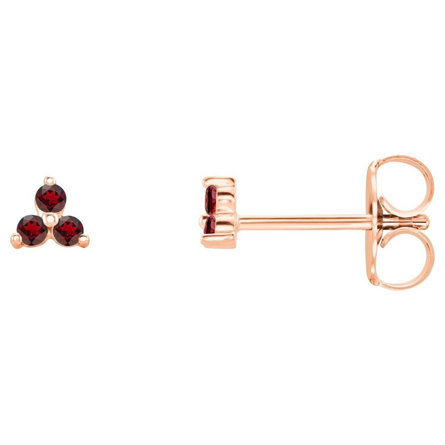 14K Gold Red Garnet Three Stone Cluster Stud Earrings