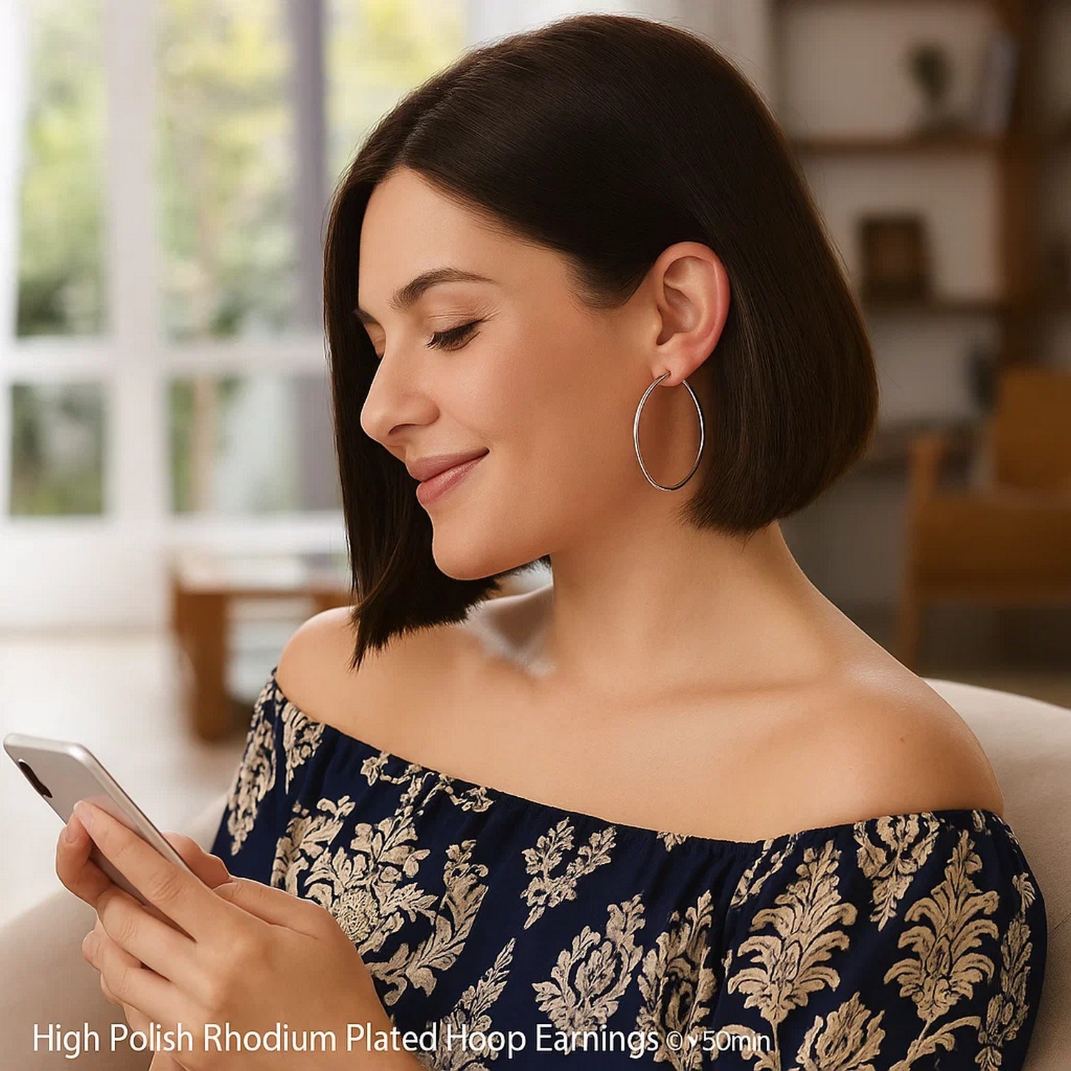 Sterling Silver Large 50mm Hoop Earrings, with their minimalist and elegant design, are the perfect accessory for both everyday wear and special occasions. Order online now to enjoy free shipping and great prices.