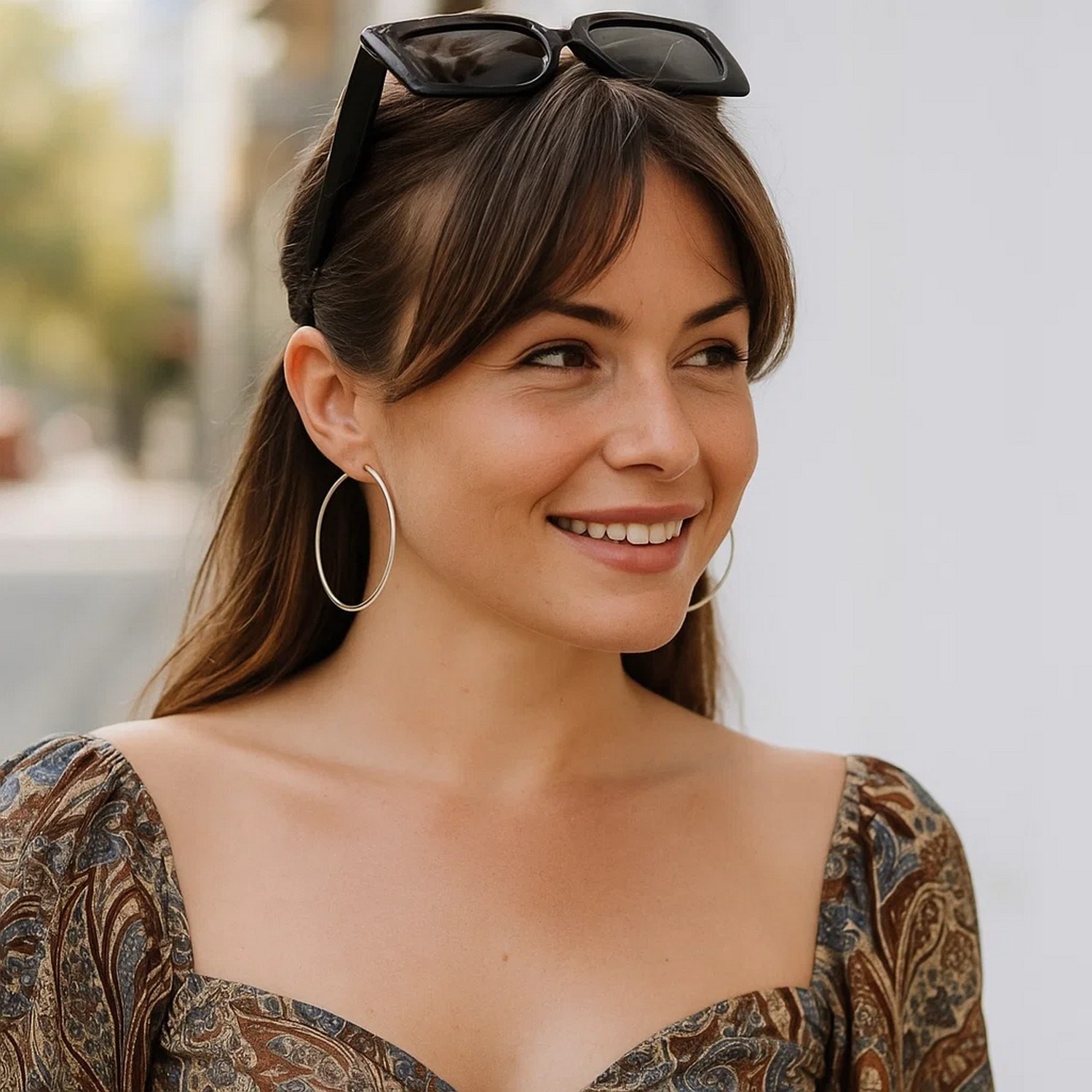 Stylish rhodium-plated hoop earrings in sterling silver measuring 2×60 mm. Featuring a sleek, polished finish and lightweight design, these classic hoops offer modern shine and effortless elegance, perfect for everyday wear or a refined evening look.