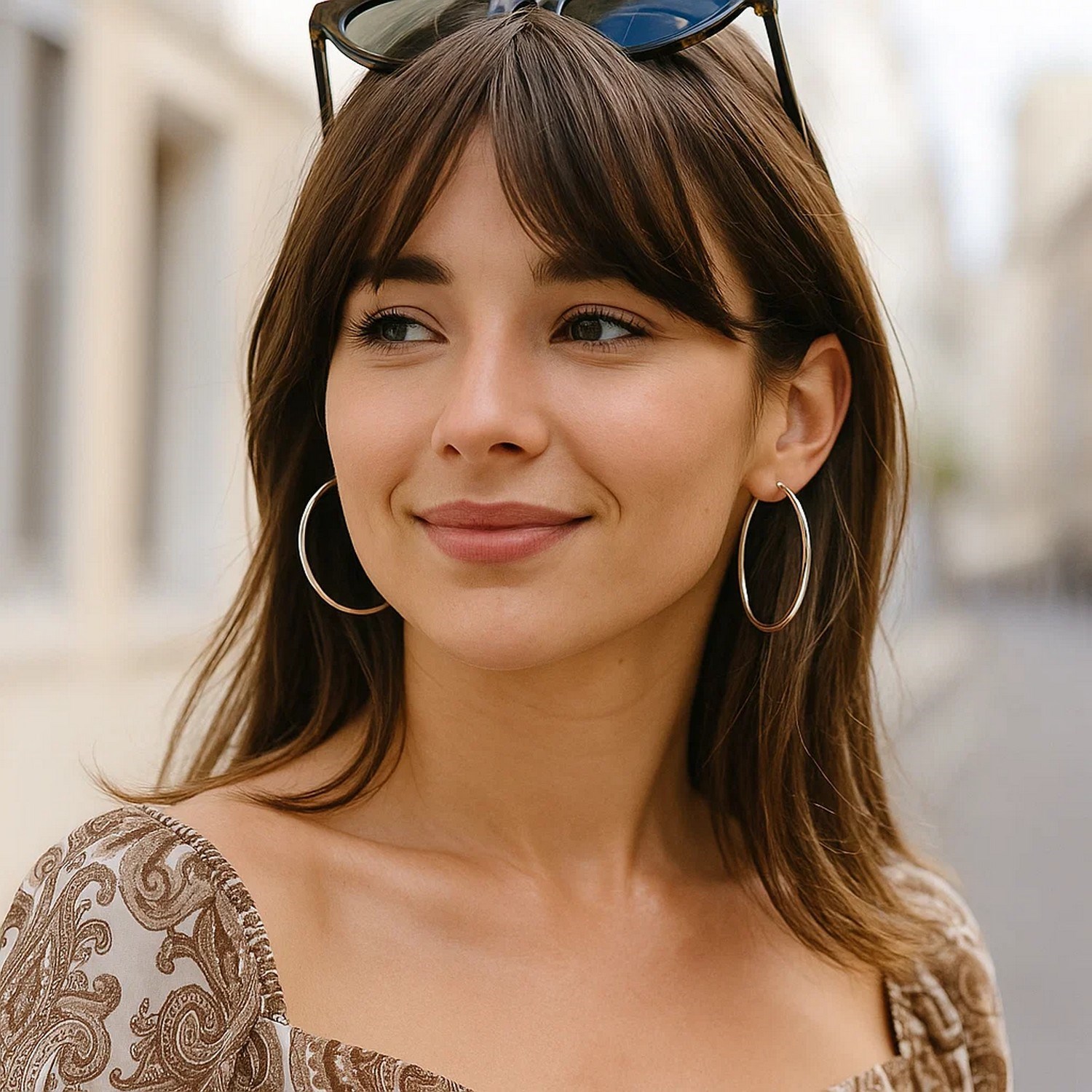 Stylish rhodium-plated hoop earrings in sterling silver measuring 3×50 mm. Featuring a sleek, polished finish and lightweight design, these classic hoops offer modern shine and effortless elegance, perfect for everyday wear or a refined evening look.