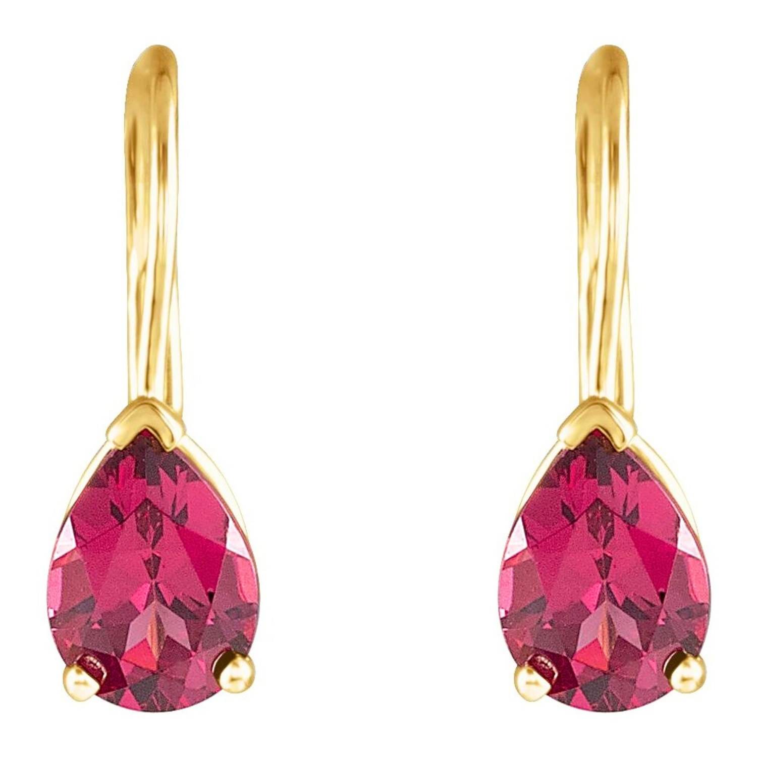 Designed for women, these 14K Gold Rhodolite Garnet Leverback Earrings showcase the vibrant red-purple tones of natural rhodolite garnet stones in an elegant design. Each 7 x 5 mm pear-cut stone is securely set with a V-end prong setting, reflecting light in multiple directions to add depth and sparkle to the wrist. The leverback closure makes them easy for everyday wear while completing the look in both modern and classic outfits.