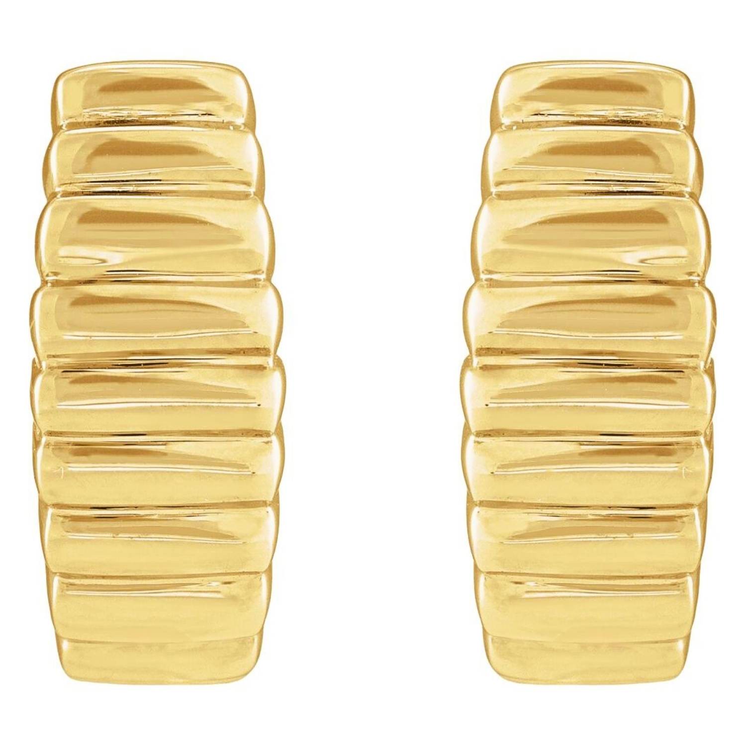 14K Yellow Gold 15 mm Ribbed and Puffed J Hoop Earrings