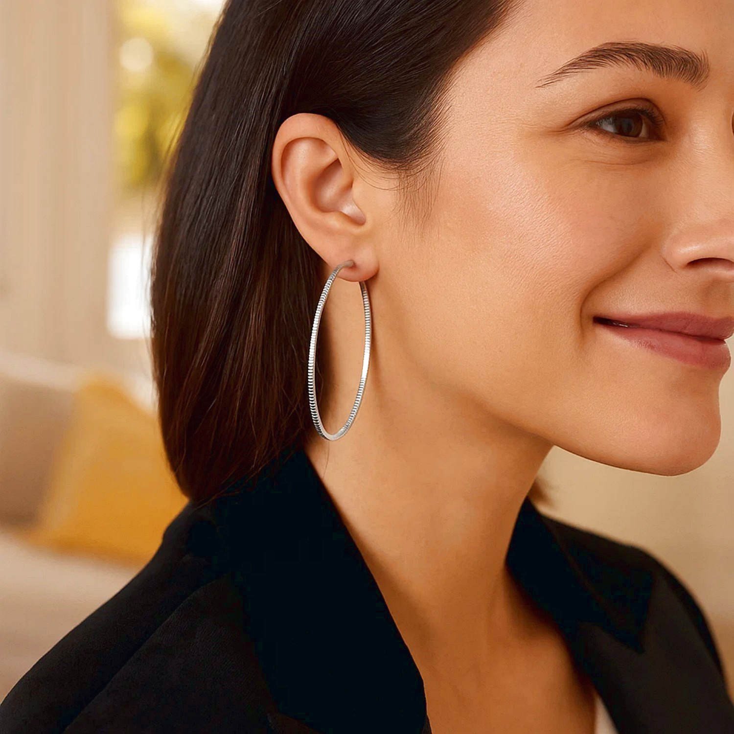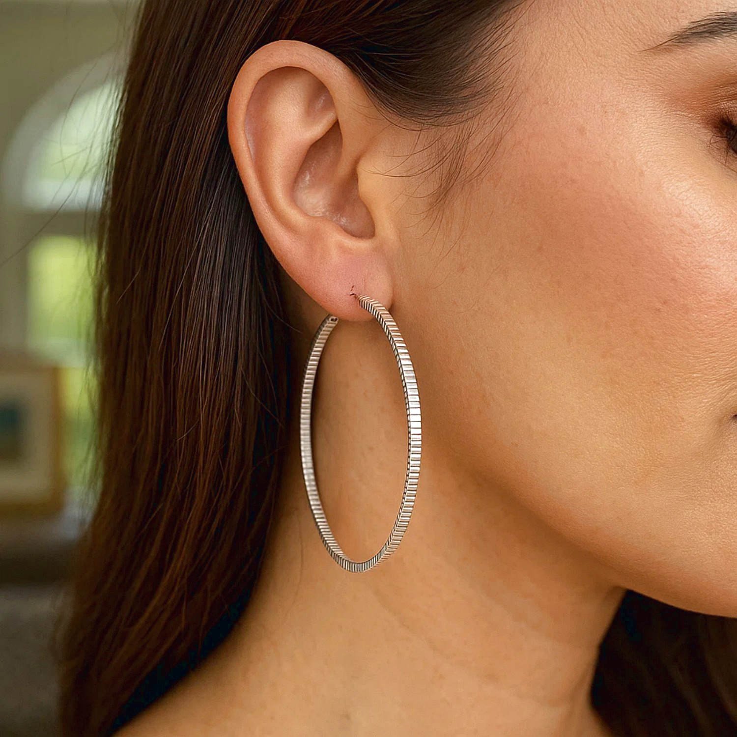 Sterling Silver Ridge Textured 2mm x 50mm Hoop Earrings add a modern touch to classic hoop earrings with their elegant lines and textured surface. They add a simple sparkle to everyday chic and a sophisticated look for special occasions. Order online now and don’t miss out on free shipping and special discount opportunities.