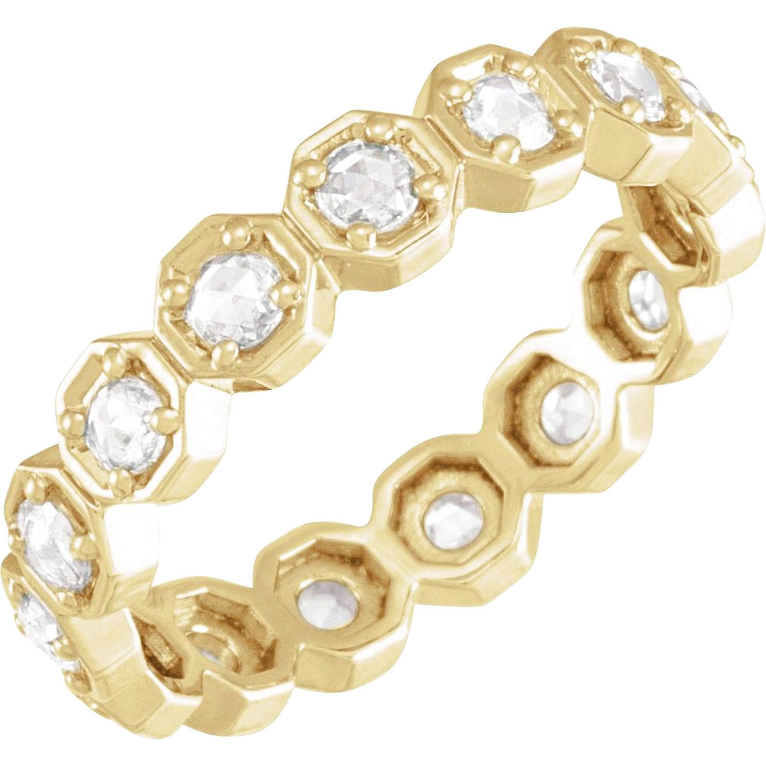 Geometric 14k Gold 1/2 Carat Rose-Cut Diamond Eternity Band