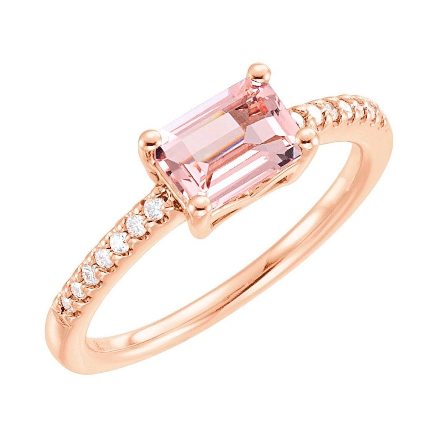 This ring reflects the elegant harmony of natural pink morganite and diamonds, featuring a 7×5 mm emerald-cut morganite stone with dazzling brilliance. Designed in 14K rose gold, the ring is complemented by 1/10 CTW natural diamond details. Thanks to its polished surface and fine craftsmanship, it can be comfortably worn both for everyday use and on special occasions. It is a meaningful choice for engagements, weddings, anniversaries, or as a gift for your loved ones.