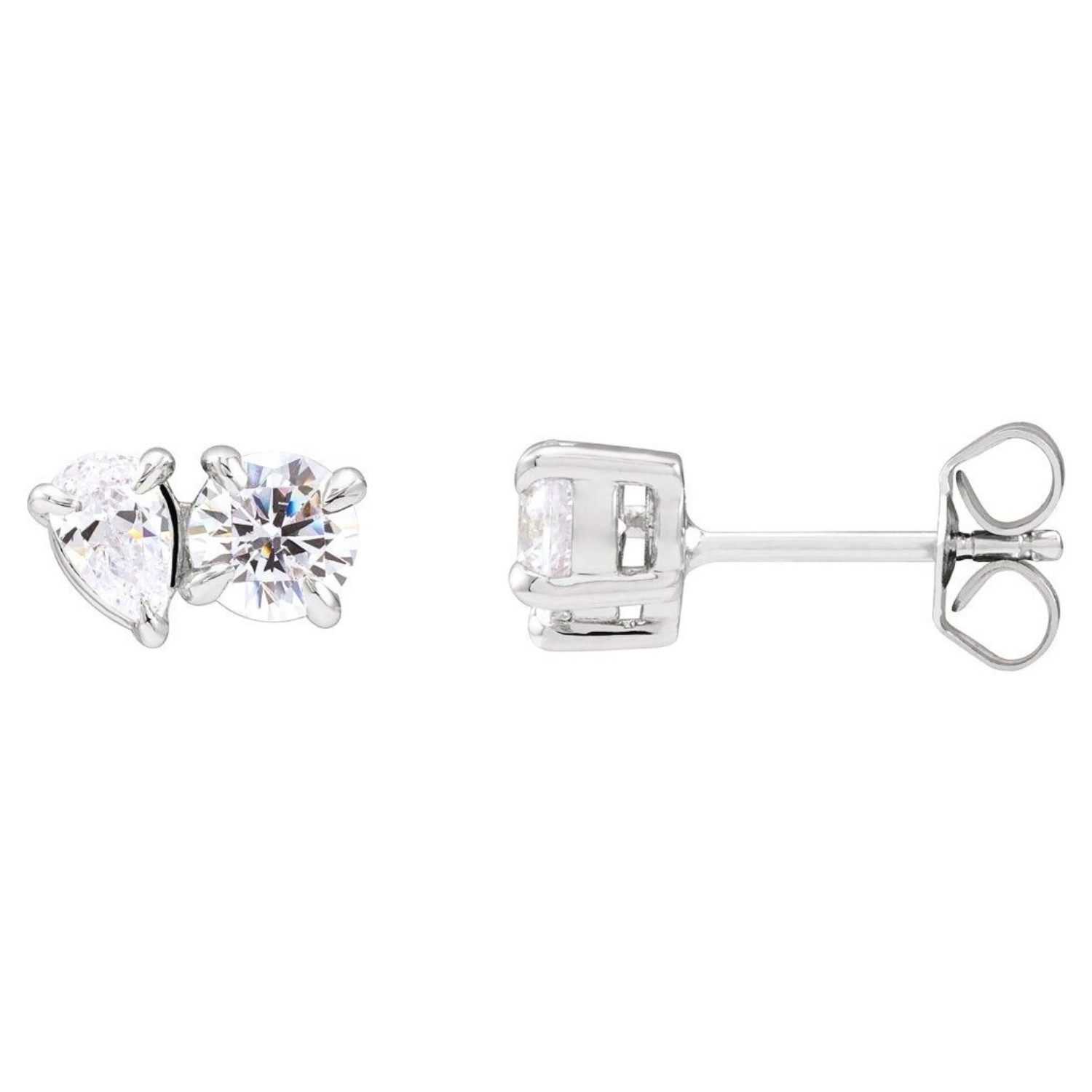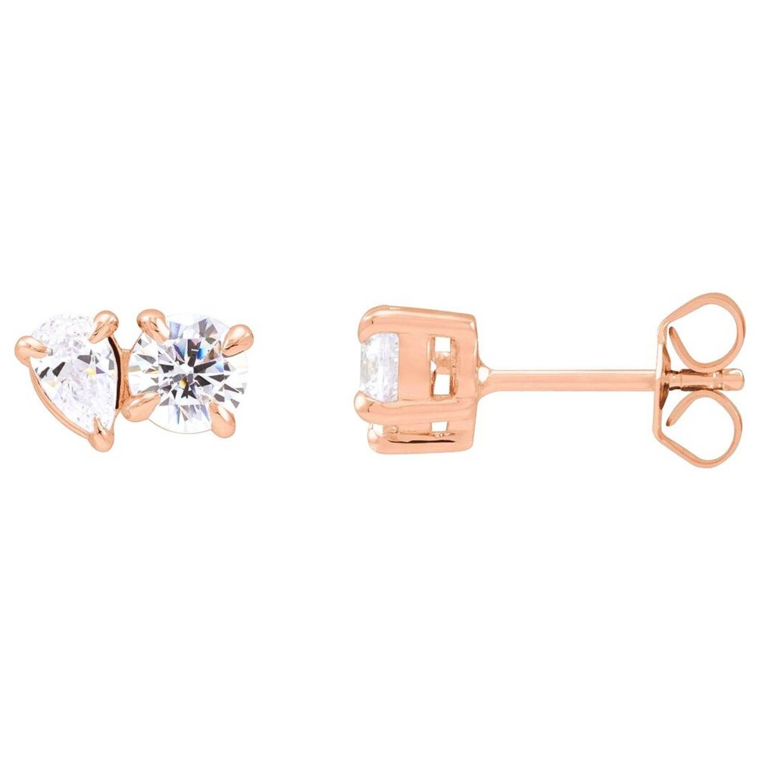 Round and Pear Lab Diamond Toi Et Moi Stud Earrings