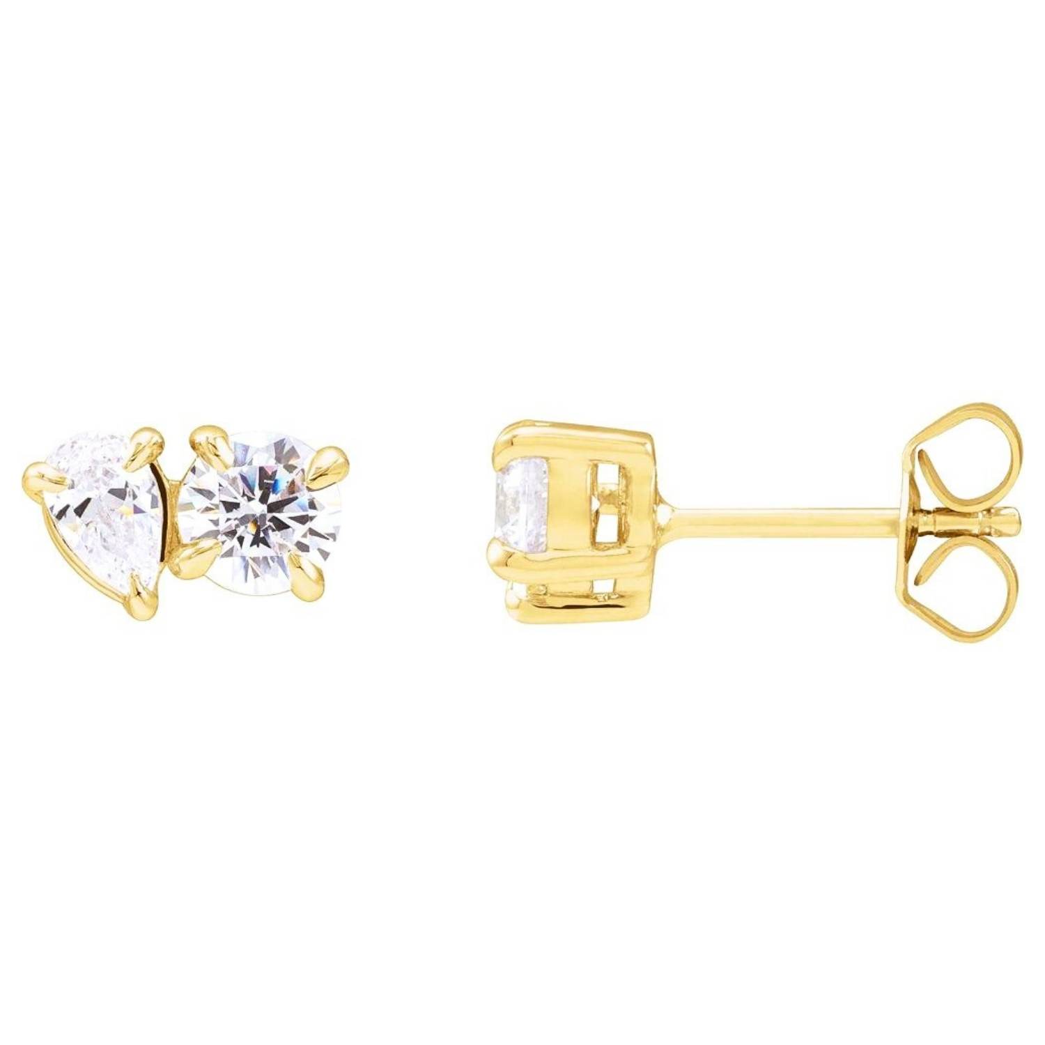 Round and Pear Lab Diamond Toi Et Moi Stud Earrings 14K Gold