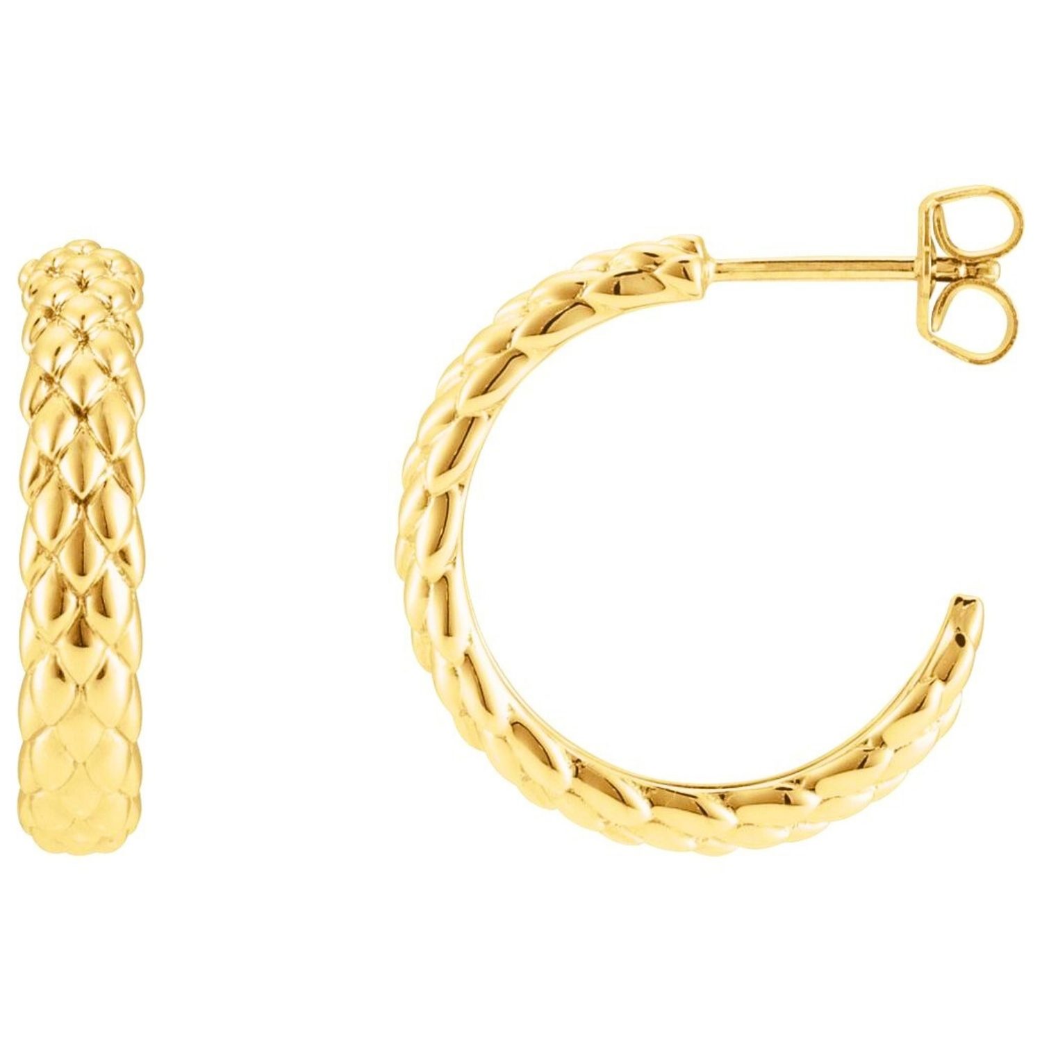 14K Gold 20mm Scale Hoop Earrings are a special piece of jewelry that combines the classic hoop shape with a modern interpretation through its patterned surface design. Order online now and don’t miss out on free shipping and special discount opportunities.