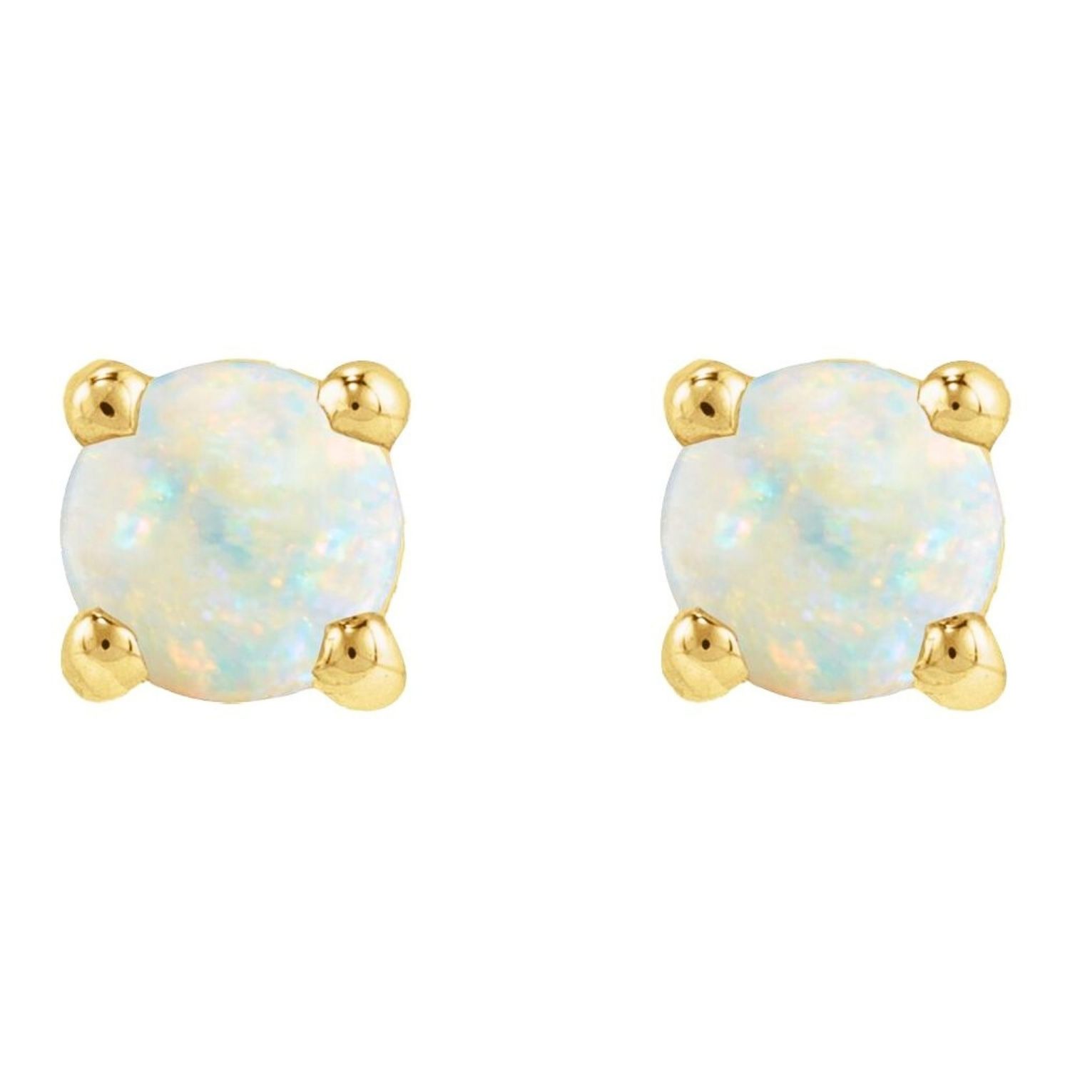 Designed for women, the 14K Gold Single Genuine 3mm White Opal Stud Earrings Flat Back combine the captivating sparkle of natural white opal with a simple design. The round cabochon cut opal catches the eye with its pastel reflections that change with the light. Its flat back and single design make it ideal for second piercings or mixed earring styles.